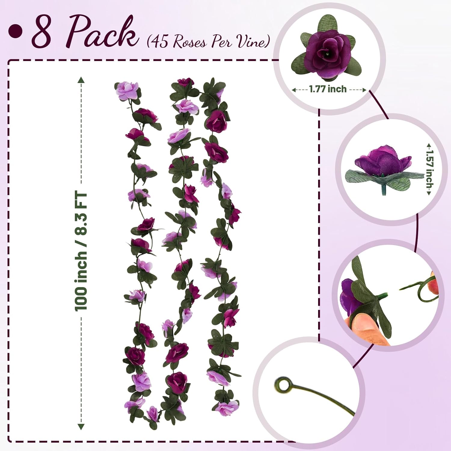 - Create a Romantic Atmosphere with Rose Garland: Enhance any space with our 2/8/12-pack rose garlands, each 8.2 feet long and featuring 45 lifelike roses per vine. Perfect for weddings, birthday parties, Christmas, bedrooms, or background walls, these rose garlands for decoration add an elegant touch to your special occasions.