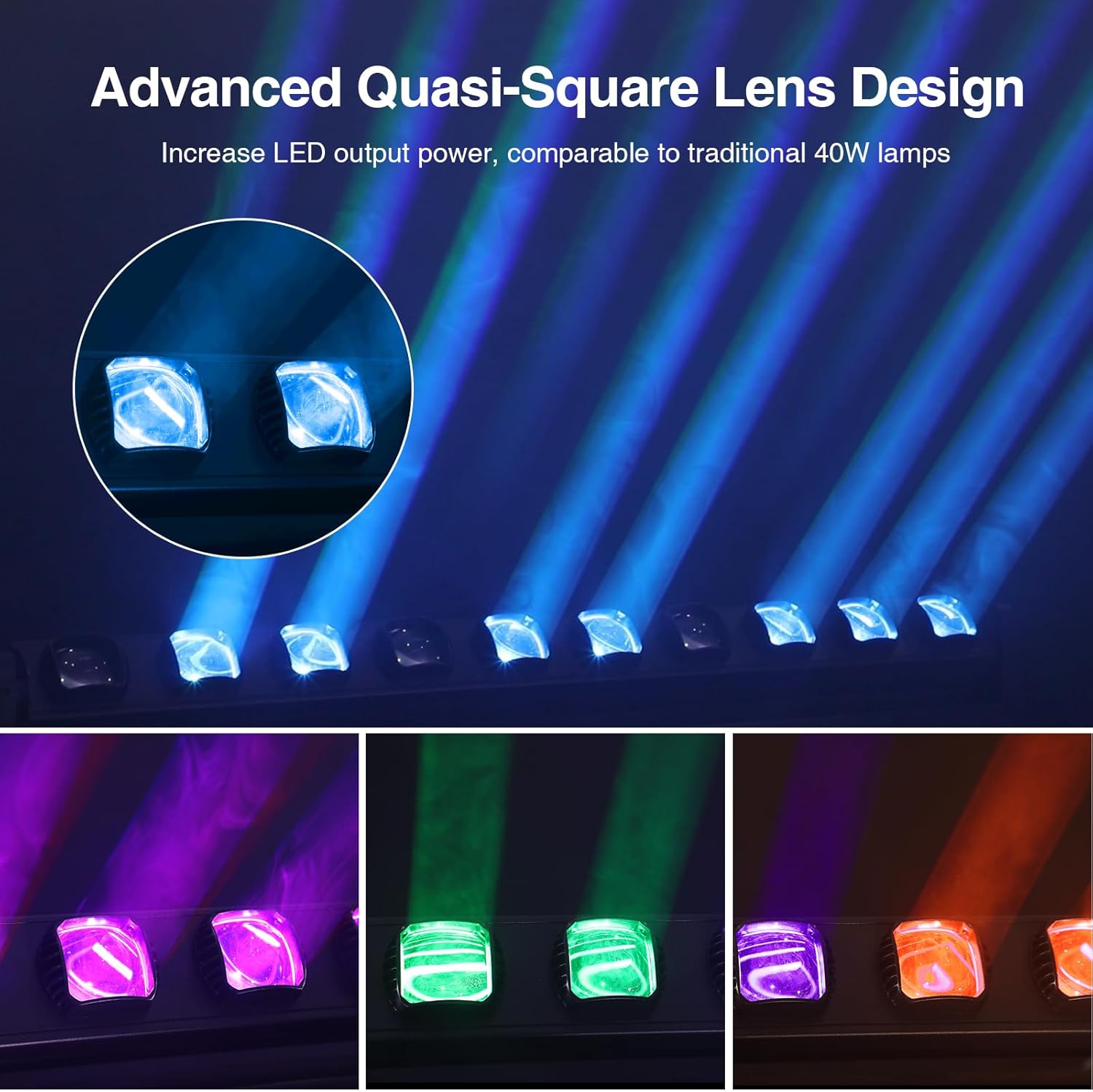 - Advanced Optics for Superior Brightness:The advanced quasi-square lens design elevates the 15W LED output to match traditional 40W lights. At a distance of 3 meters, it delivers impressive illuminance: 5800 lux (Red), 12520 lux (Green), 402 lux (Blue), and 17150 lux (White), ensuring vibrant, precise beams for any performance.