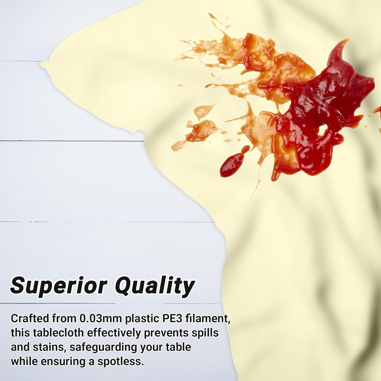 - Premium Material: Engineered with premium 0.03mm PE3 plastic, this waterproof plastic table cloth offers robust protection against spills, stains, and scratches, the oil-resistant surface wipes clean in seconds or can be tossed post-event for zero cleanup stress. Our table cloth prevent tearing, even during picnic themed party decorations, ensuring your table stays pristine beneath.