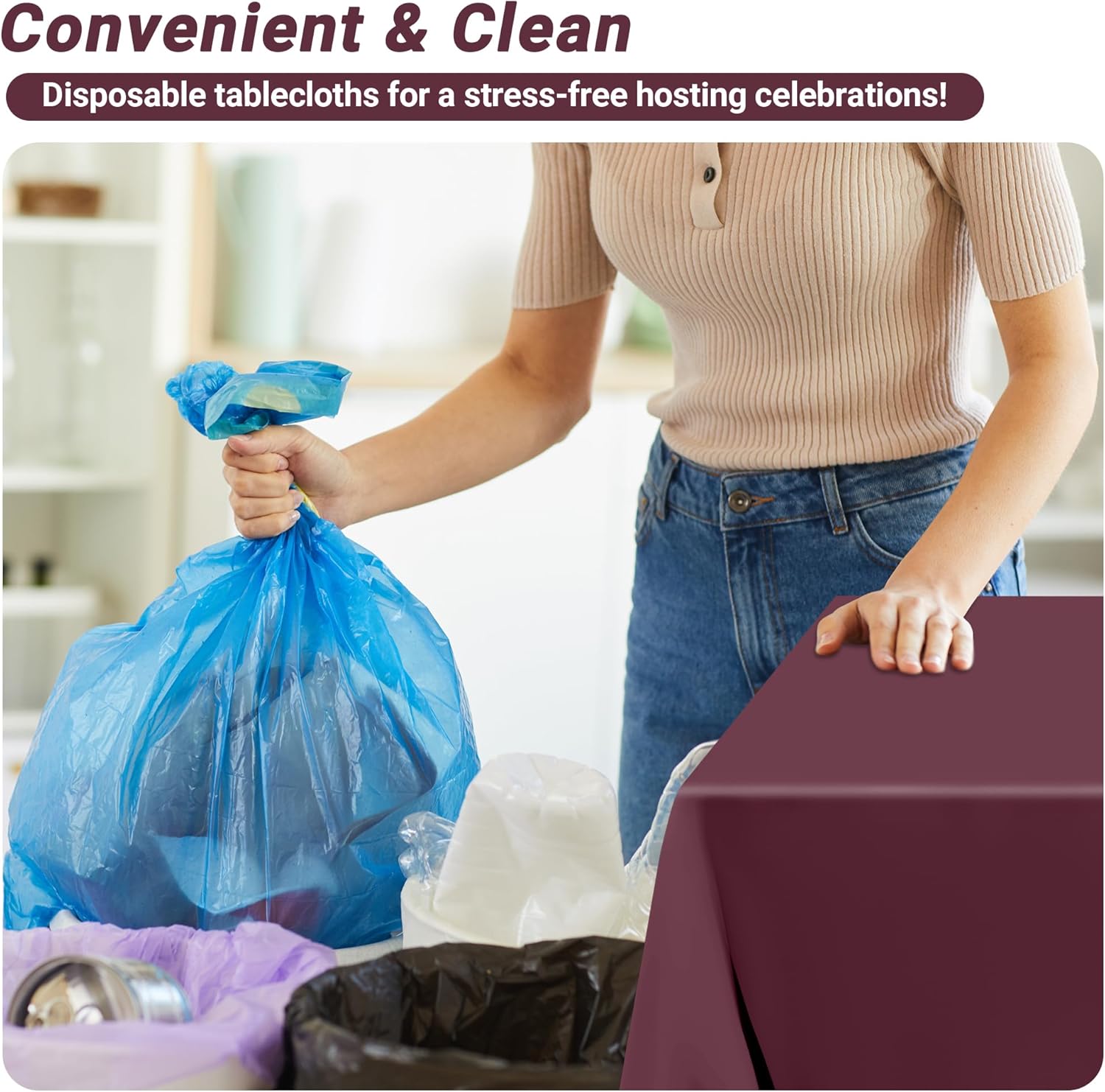 - Multi-Purpose Use: Transform every occasion with our wine-red plastic table cover, crafted to effortlessly transition from rustic BBQ party decorations to elegant anniversary table setups. This square tablecloth adapts to diverse needs—cover it over picnic tables for casual outdoor gatherings, proving one table cloth truly conquers all seasons and celebrations.