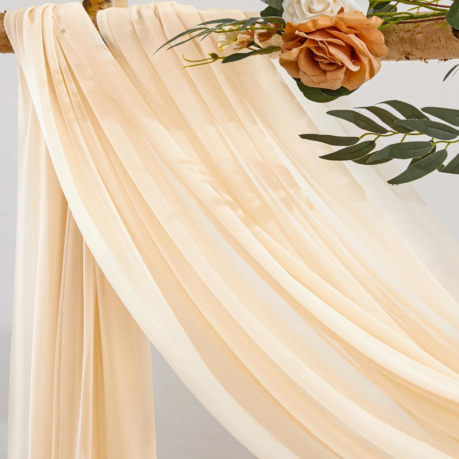 - Wedding Arch Draping Fabric Package: Package including 1 panel champagne wedding arch drapes, each panel is 30" wide and 20ft long.Create flowing floor cascades, artistic folds, or full canopy coverage for ceremonies/photo booths.