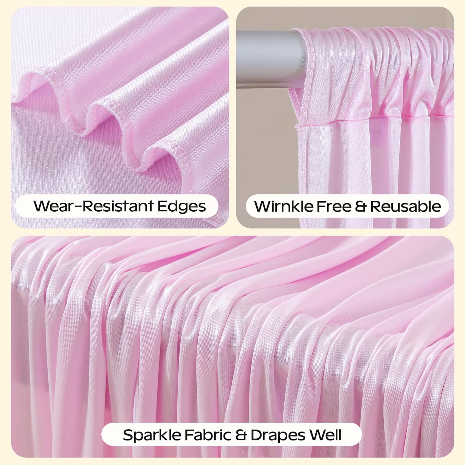- Easy Care & Reusable Pink Shimmer Backdrop Curtain:We recommend you could clean the pink shimmer drapes for backdrop with hands.Or you could put the Polyester backdrop curtains in a laundry bag and then use the washing machine to wash it.We recommend cleaning and storing it after used, you can use it again when needed next time.