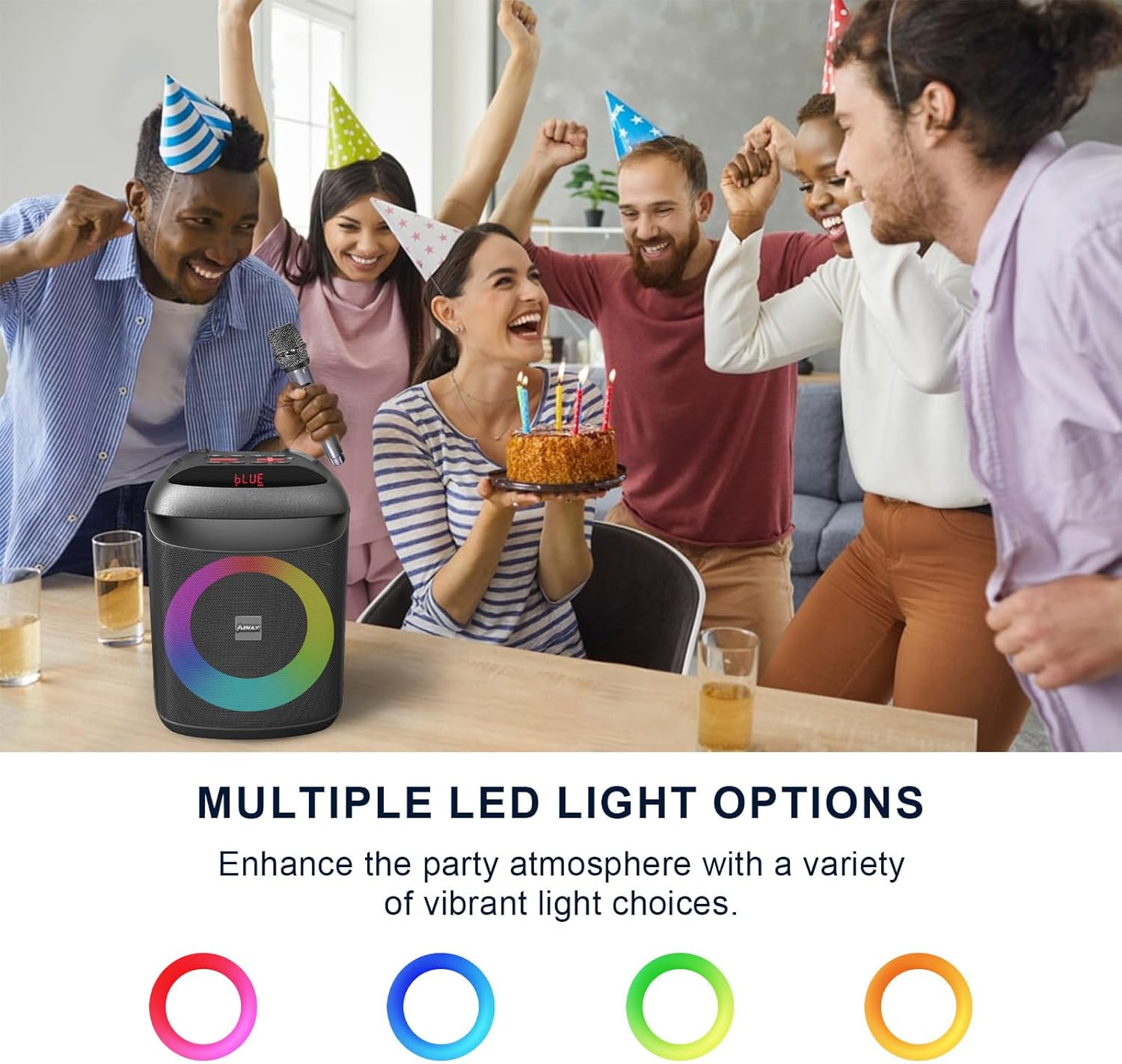 AIMAX Karaoke Machine with Bluetooth and Two Wireless Microphones, Portable Speaker for Home & Outdoor Parties, 7-Hour Battery Life, Mic/AUX/USB/TF Support, Perfect for Kids & Adults Singing