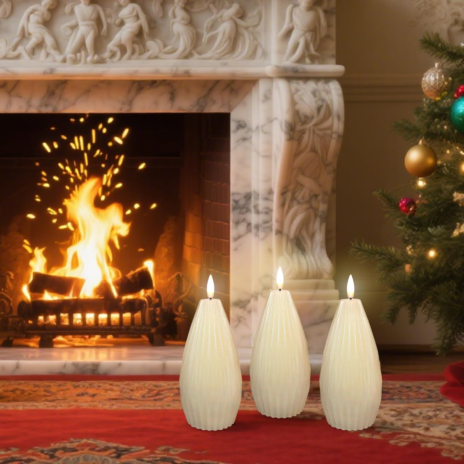 Silverstro Irregular Flameless Candles with Remote Control & Timer Function, Real Wax Flicker Battery Operated Candles for Home Party Wedding Nautical Christmas Ocean Decor - Set of 3(Ivory)