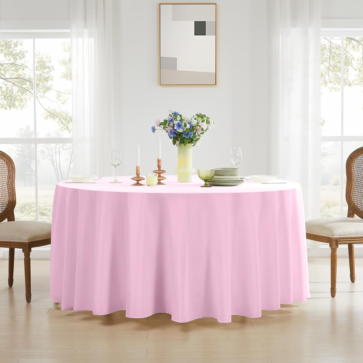 Round Tablecloth 6 Pack 108 Inch Pink Tablecloths Washable Decorative Linen Polyester Table Clothes Cover for Dining Table Banquets Buffet Parties and Wedding