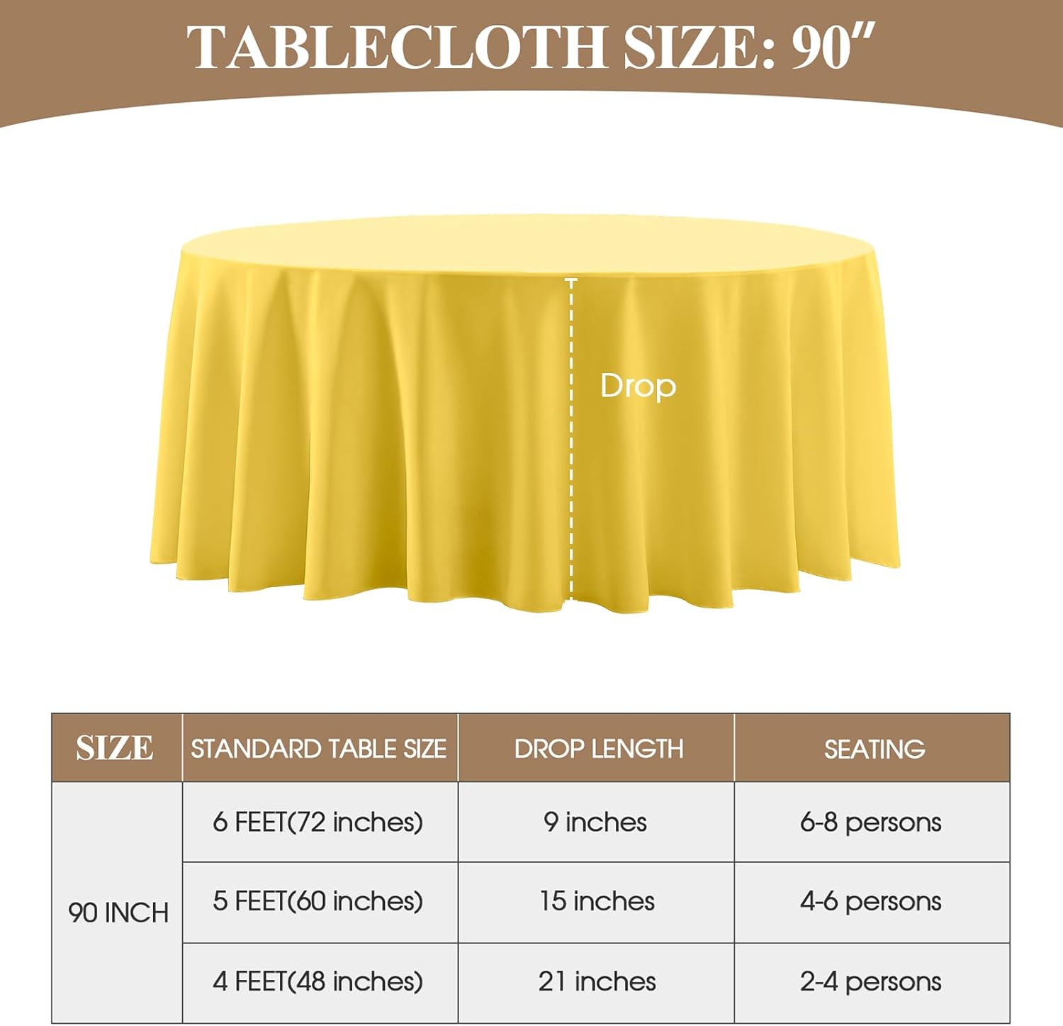 - Suitable Size: This polyester round tablecloth has multiple sizes to choose from, 90, 108, 90, 132 inches, which can meet the needs of tables of different sizes. In order to buy a tablecloth that is more suitable for your table, please measure the actual size of your table before purchasing and refer to our size chart