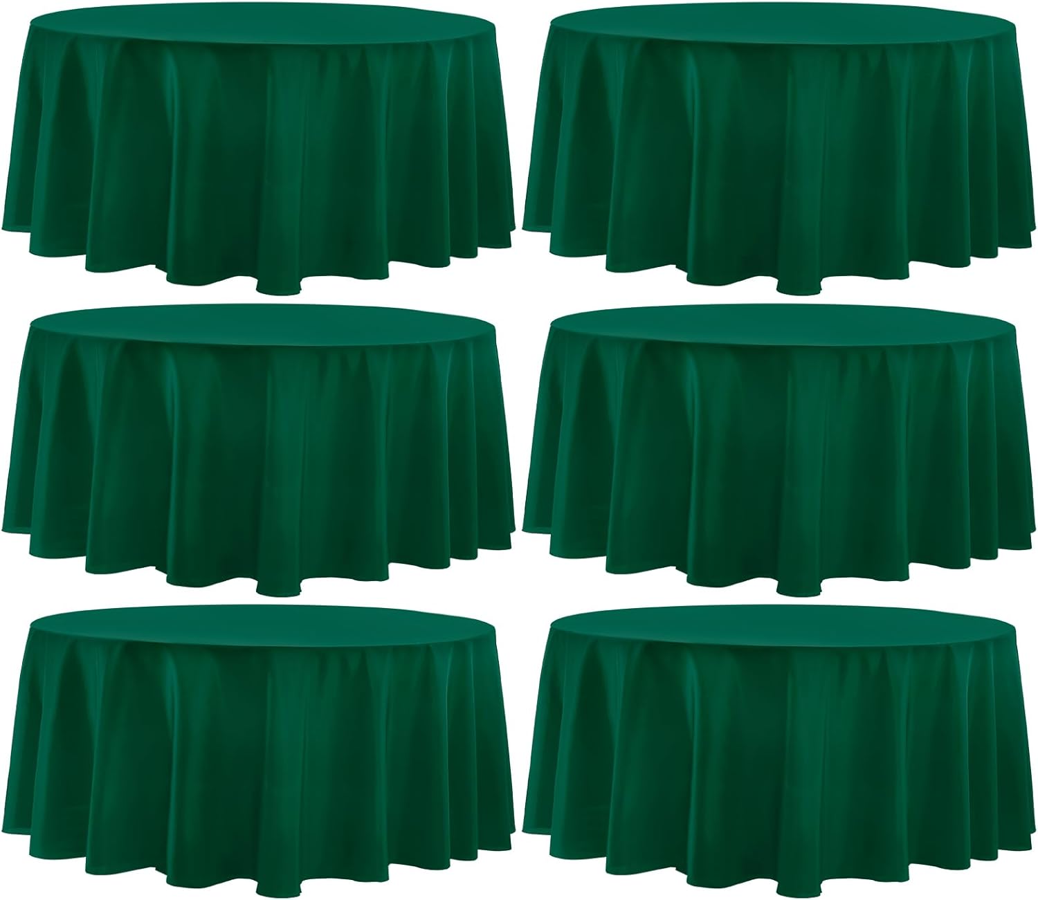 Round Tablecloth 6 Pack 108 Inch Dark Green Tablecloths Washable Decorative Linen Polyester Table Clothes Cover for Dining Table Banquets Buffet Parties and Wedding