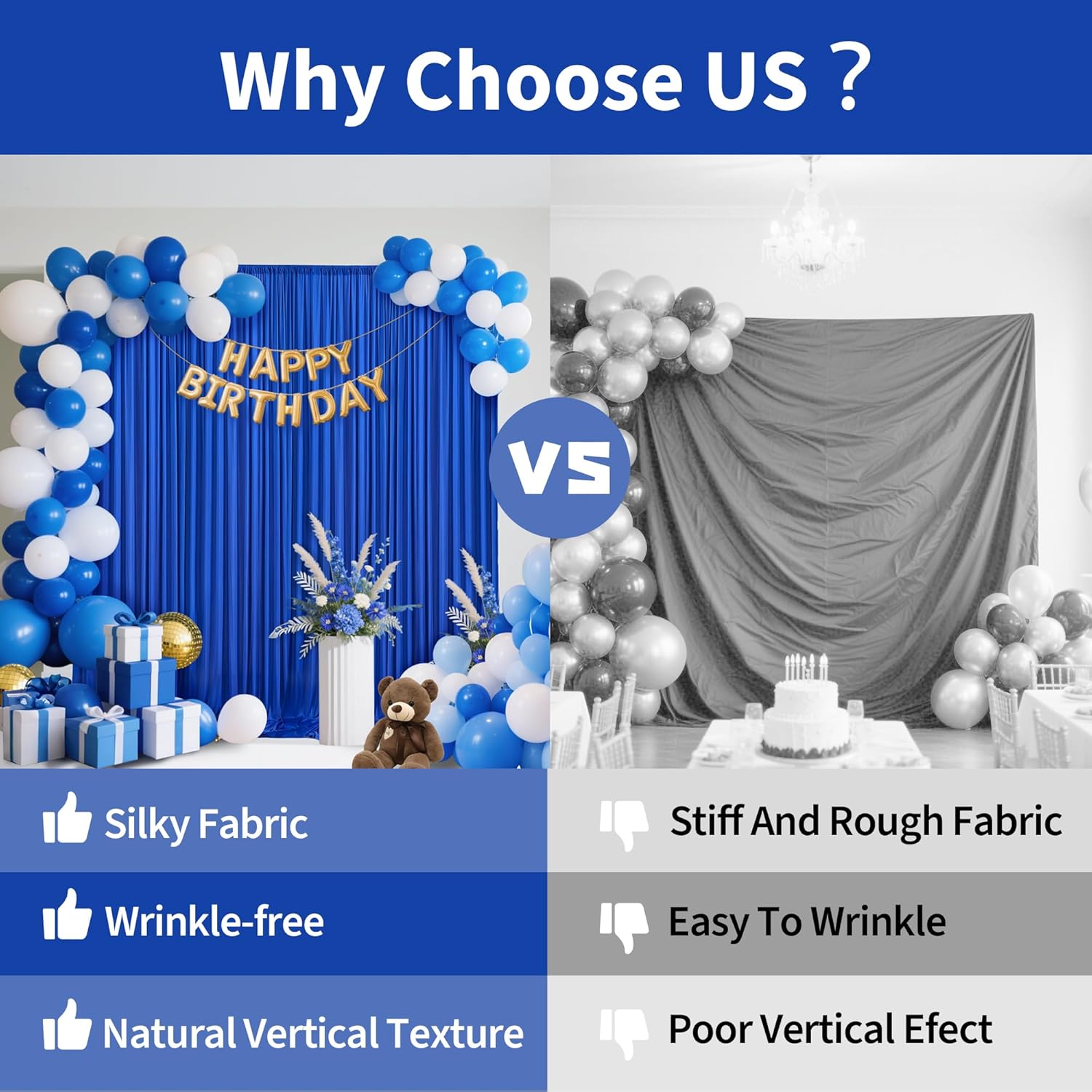 - Material: Backdrop curtains is made of high-quality polyester fabric, which has a soft texture, natural sagging, and is not easy to wrinkle. It can be tightened or stretched to determine the desired background width, perfectly decorating event or photo backgrounds