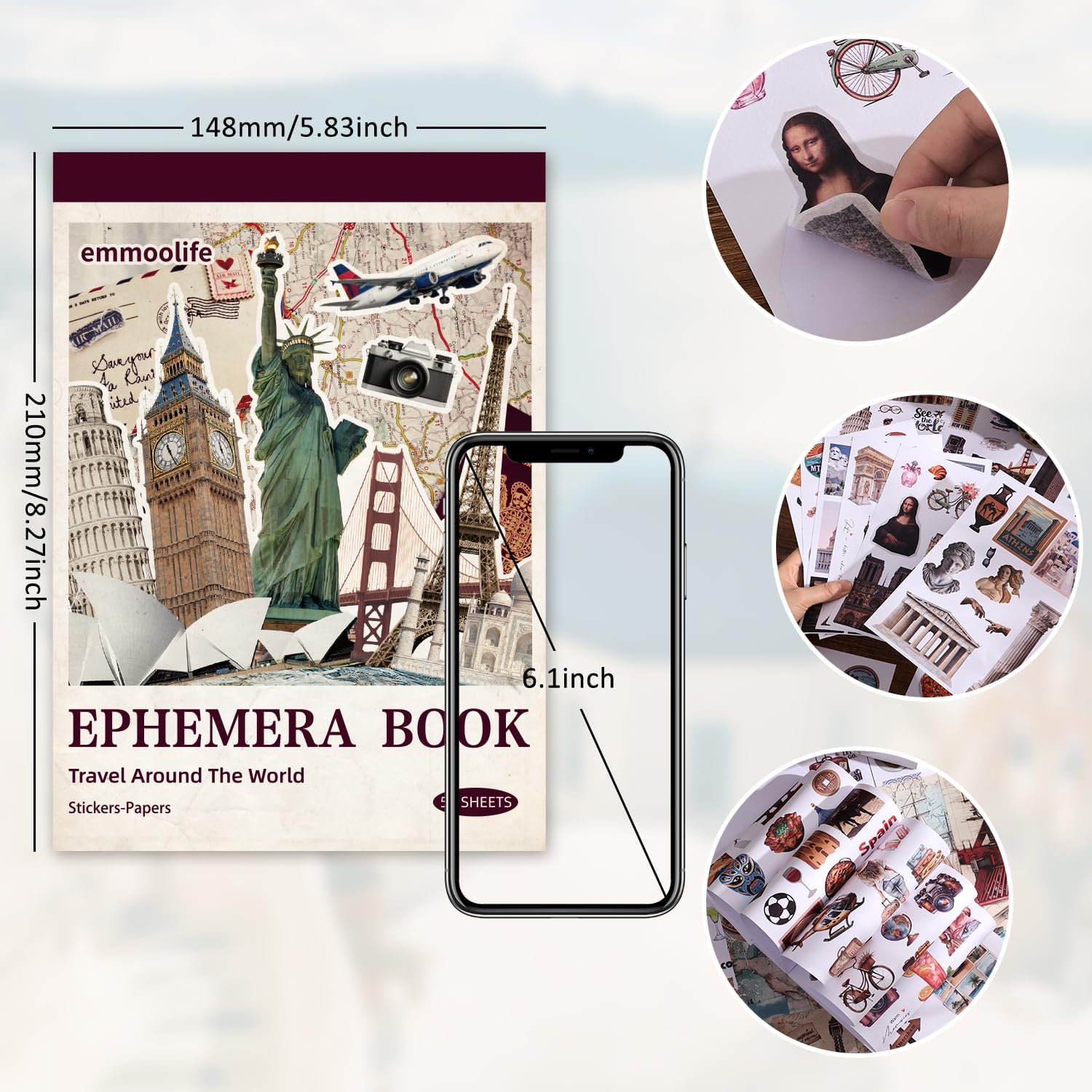 57 Sheets Vintage Travel Scrapbook Sticker Book, 500+ Vintage & Modern Stickers for Scrapbooking, 25 Pcs Ephemera Papers Art Scrapbook Supplies for Adults Teens Women Girls Junk Journal Journaling