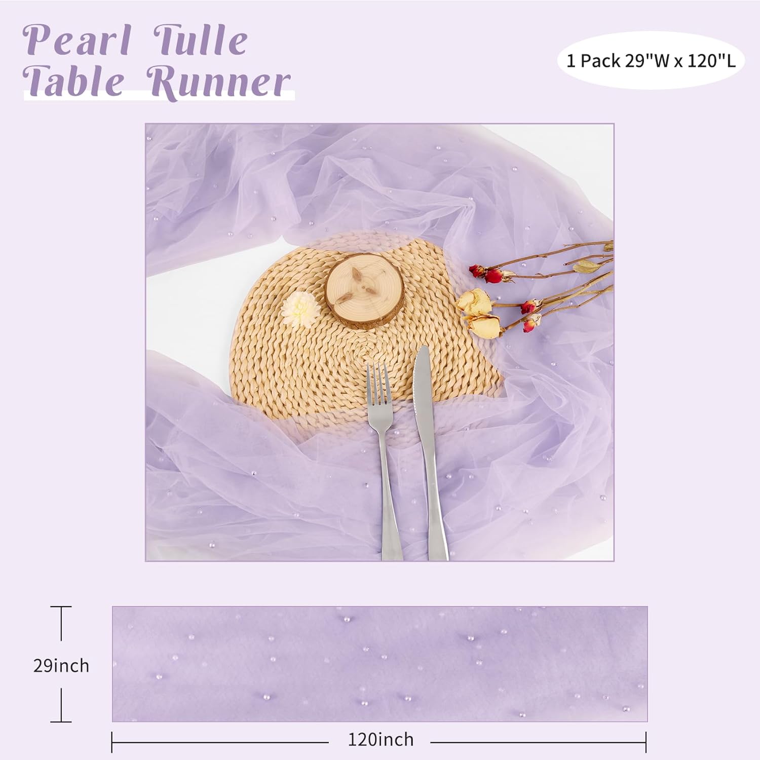 - 【Package Include】 You will receive 1 pack of 29 x 120 inches pearl tulle table runners. The pearls delicately added give this an elegance to elevate table decor, it's long enough to fit different size tables and chairs, These tulle table runner with pearls are skin-friendly. There are lots of different colors for you to choose. Perfect to decorate your tables.