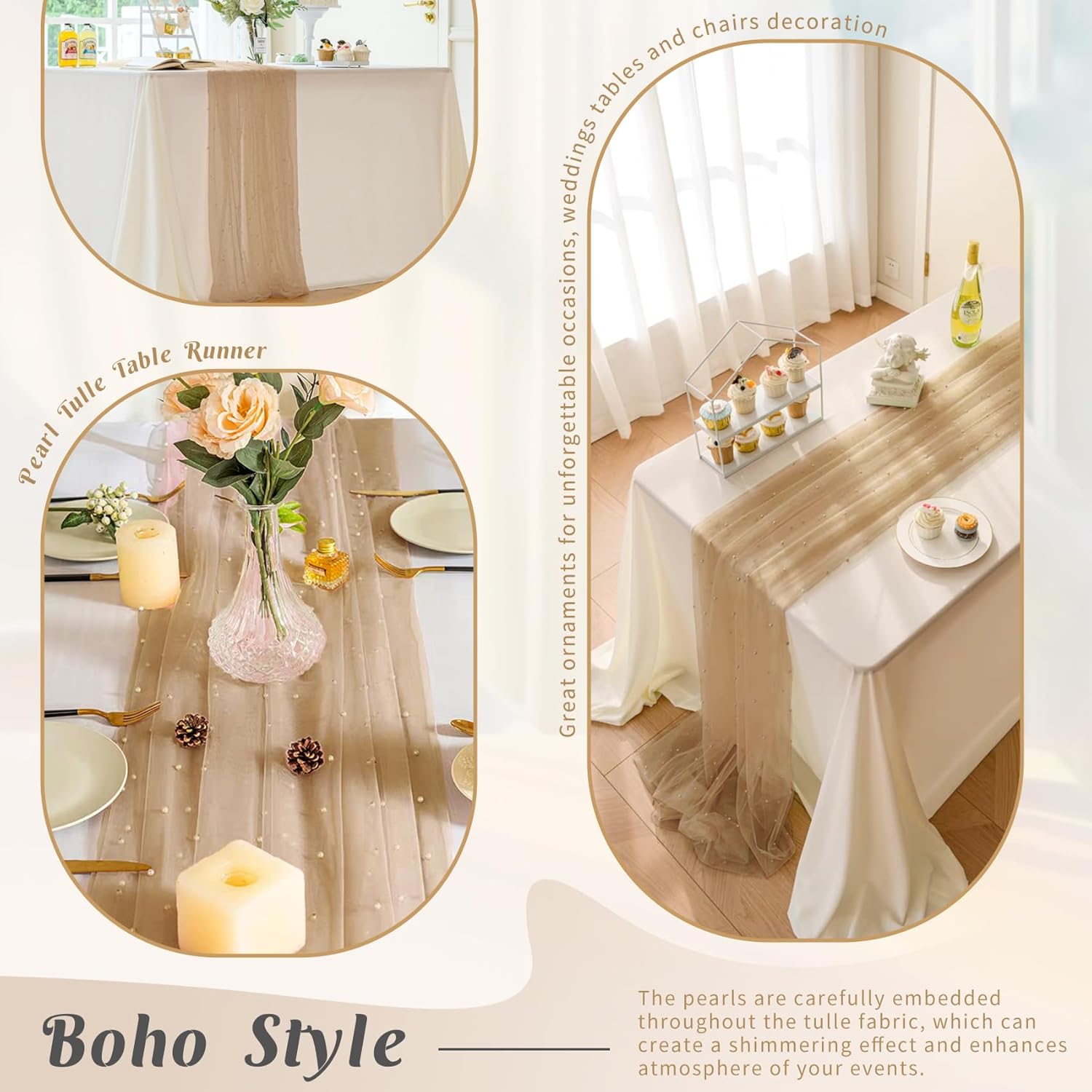 - 【Package Include】 You will receive 1 piece of 29 x 120 inches pearl tulle table runners. The pearls delicately added give this an elegance to elevate table decor, it's long enough to fit different size tables and chairs, These tulle table runner with pearls are skin-friendly. There are lots of different colors for you to choose. Perfect to decorate your tables.