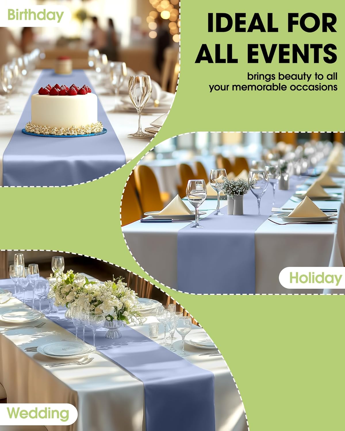 Pureegg Dusty Blue Plastic Table Runners - 10 Pack, 14'' x 108'', Water Resistant & Disposable Centerpiece Decorations for Table Cloth, Wedding, Birthday, Holiday, Baby Shower, Party, Home Decor