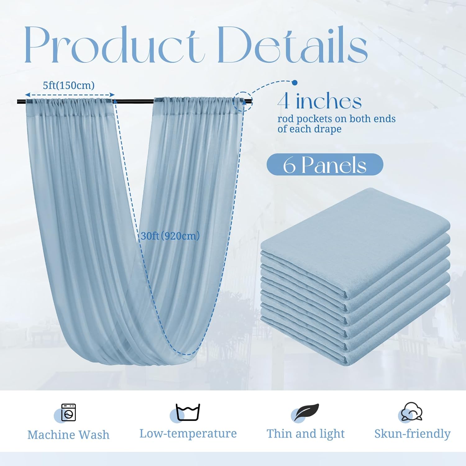 6 Panels Dusty Blue Ceiling Drapes for Wedding, 5ftx30ft Ceiling Drapes Cheesecloth Sheer Fabric Curtain Wedding Arch Draping Fabric Romantic Ceilings Decorations for Weddings Party Ceremony Stage