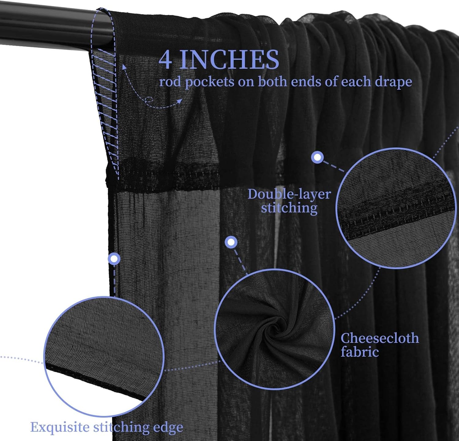 6 Panels Black Ceiling Drapes for Wedding 5ftx15ft Ceiling Drapes Wedding Arch Draping Fabric Cheesecloth Sheer Curtain Romantic Ceiling Decorations for Weddings Party Banquet Ceremony Stage