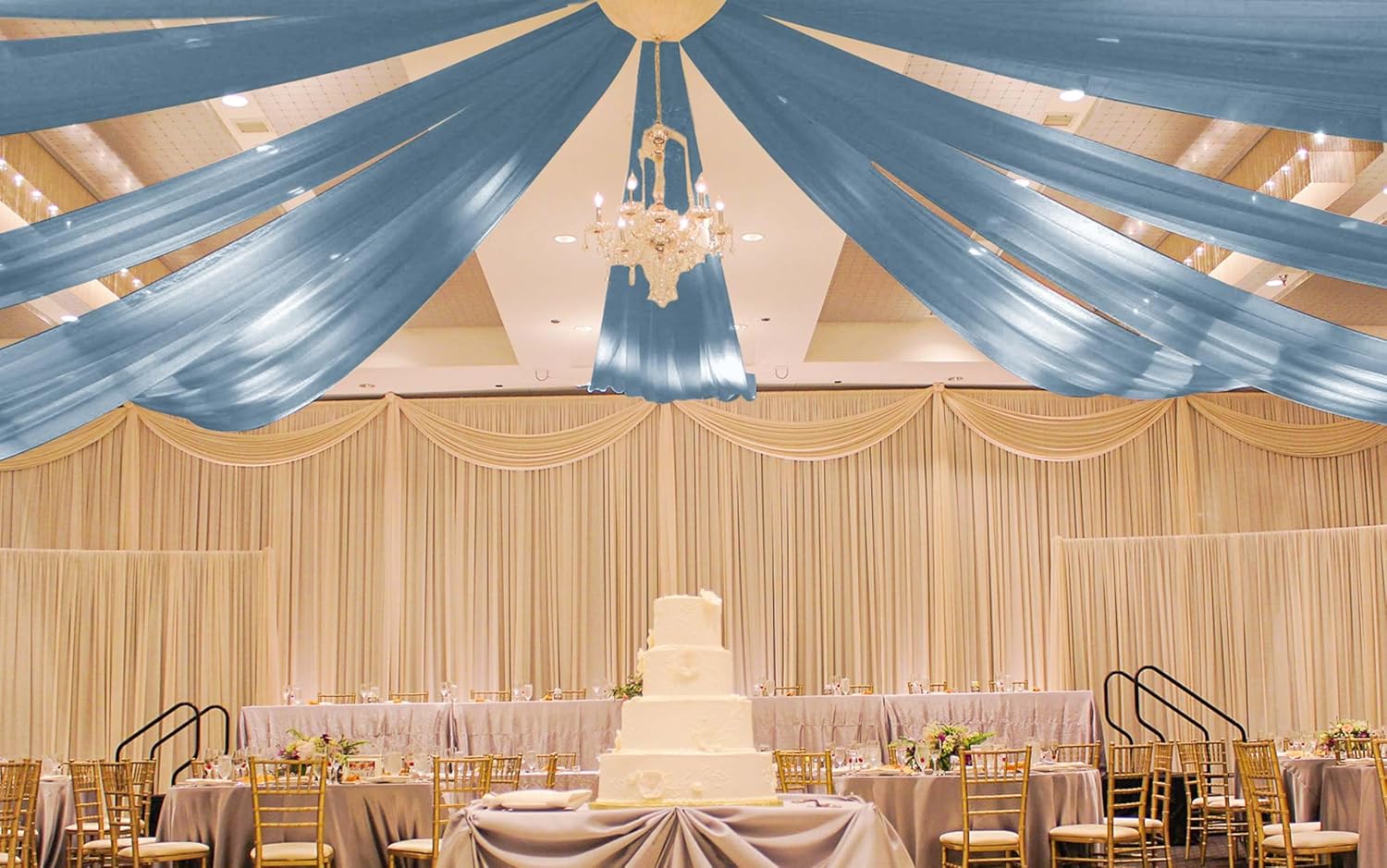 - 【Package Includes】You can get 6 panels Dusty Blue wedding Ceiling Drapes (without hanging pieces). Each wedding extra long curtain measure for 5 feet width X 15 feet length. Enough quantity to meet your needs for decorating weddings, parties and decorating your wedding with romantic Ceiling Drapes will definitely bring you unexpected surprises.