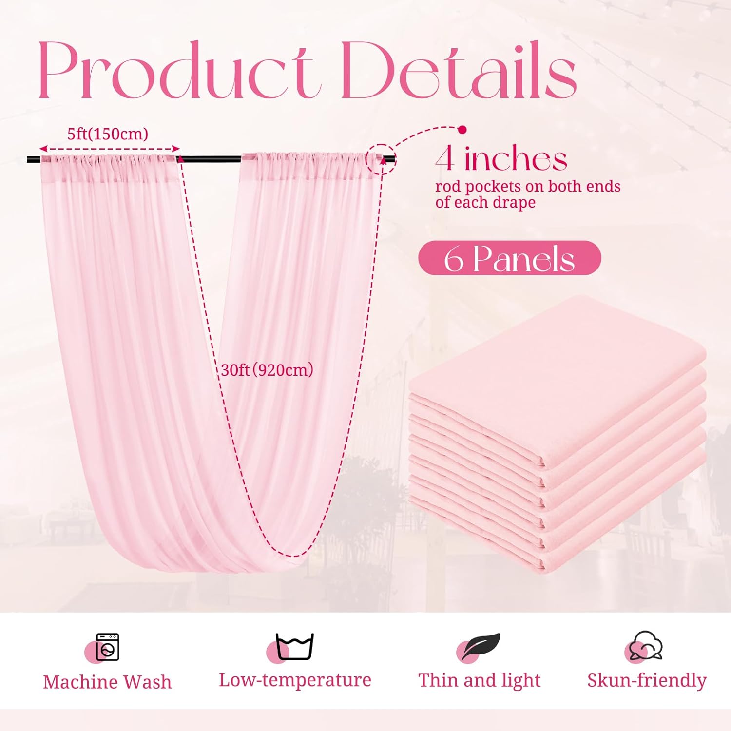 - 【Package Includes】The package will include 6 panels Pink wedding ceiling drapes (Not include stand), each wedding extra long curtain measures 5 feet (60inch)wide x 30 feet(360inch) long.The sufficient quantity can meet your demands for decorating your weddings, parties, receptions.