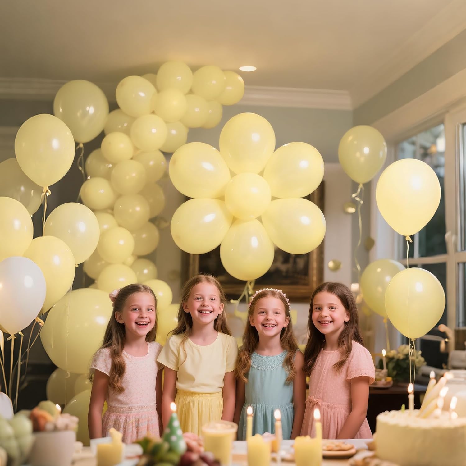 - Our pastel yellow latex balloons 12 inch are made of thickened latex, the color is bright yellow, these pastel yellow balloons can be used as balloons decorations for birthday party, and play around children.