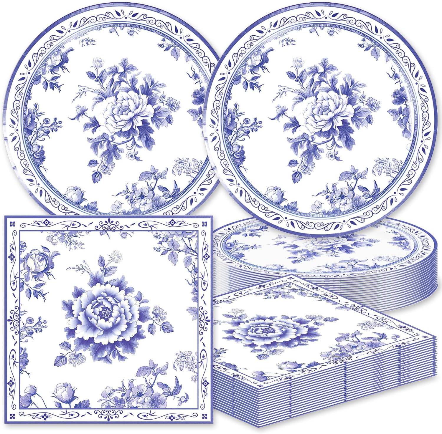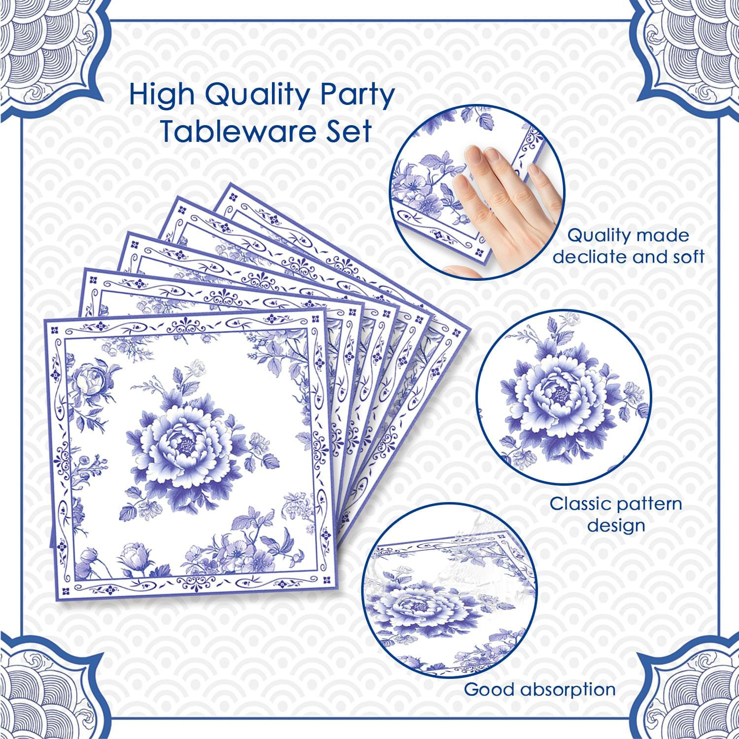 - Package Contents: Set includes 20pcs 7-inch Blue Flower plates and 20pcs 6.7x6.7-inch Blue Flower napkins, ensuring you have enough supplies for your guests.Convenient packaging makes it easy to store and transport.