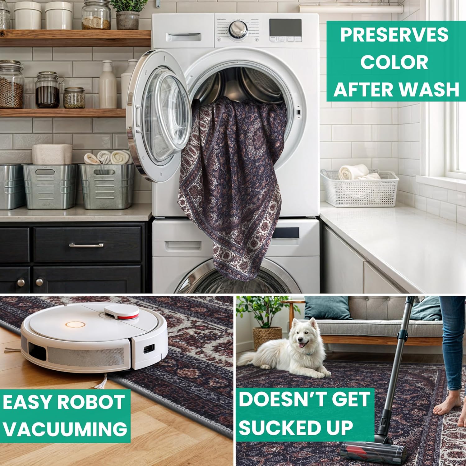 - MACHINE WASHABLE: Machine wash on delicate cycle (do not use bleach) at 85°F (30°C) and line dry or dry on air-only cycle without heat. Vacuum regularly and spot clean small stains. This easy to clean rug is perfect for families with kids and pets, and for high traffic areas.