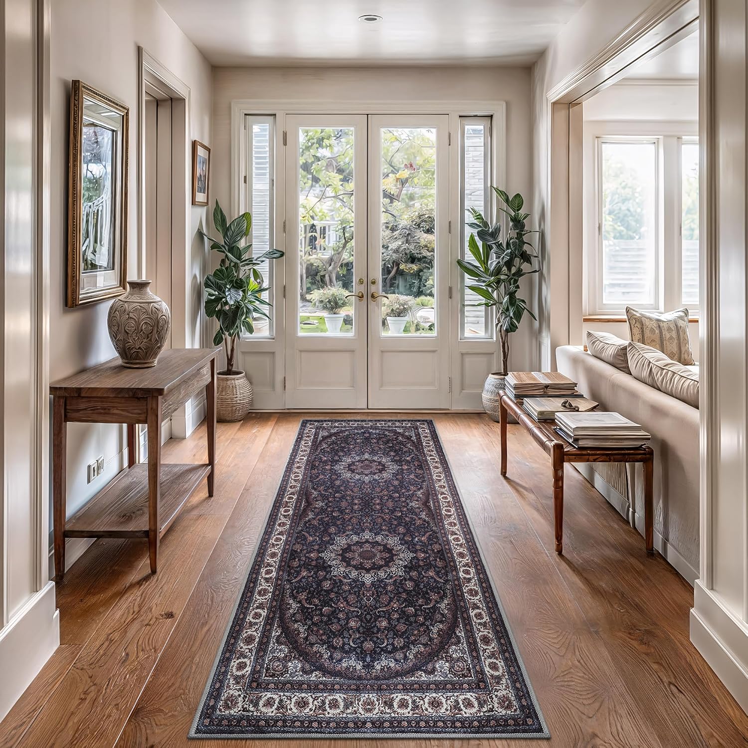 Bloom Rugs Washable Non-Slip 12 ft Runner - Navy Traditional Medallion Runner for Entryway, Hallway, Bathroom, and Kitchen - Exact Size: 2.5' x 12'