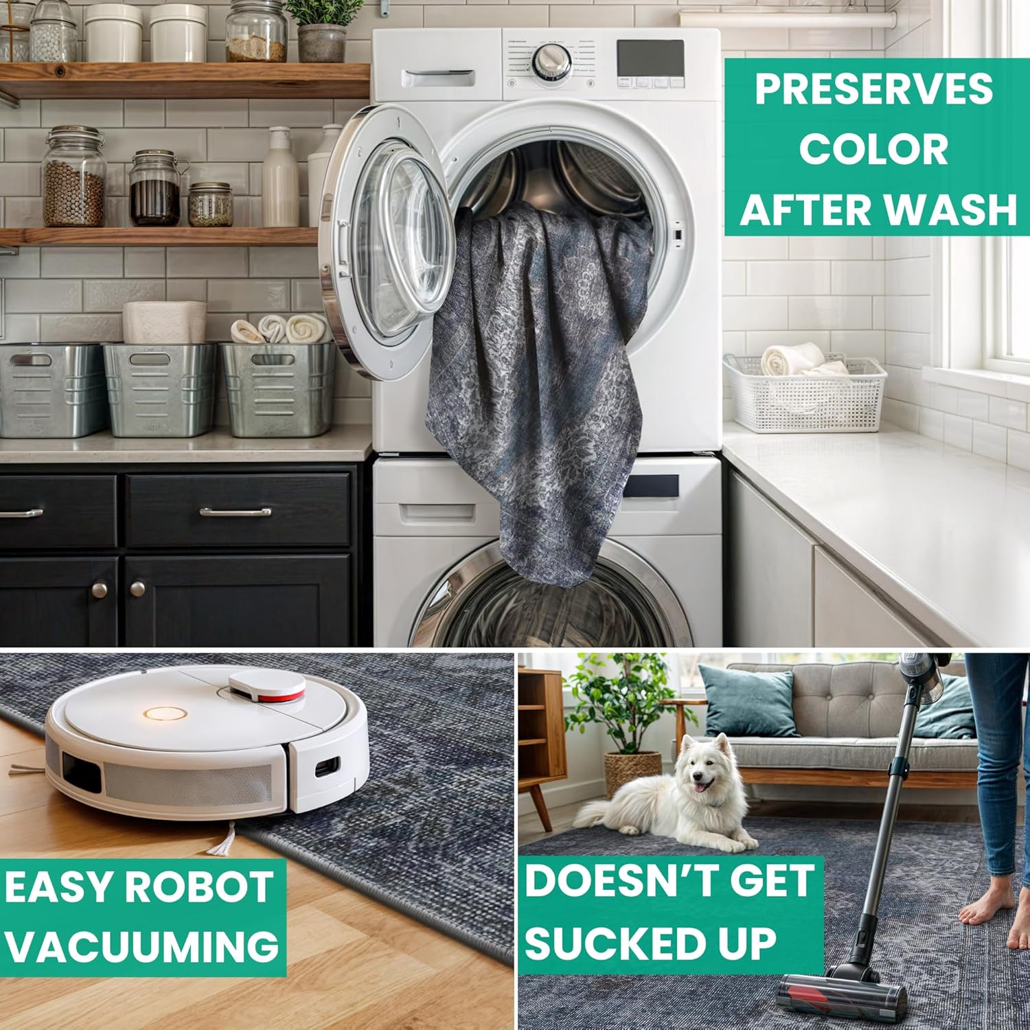 - MACHINE WASHABLE: Machine wash on delicate cycle (do not use bleach) at 85°F (30°C) and line dry or dry on air-only cycle without heat. Vacuum regularly and spot clean small stains. This easy to clean rug is perfect for families with kids and pets, and for high traffic areas.
