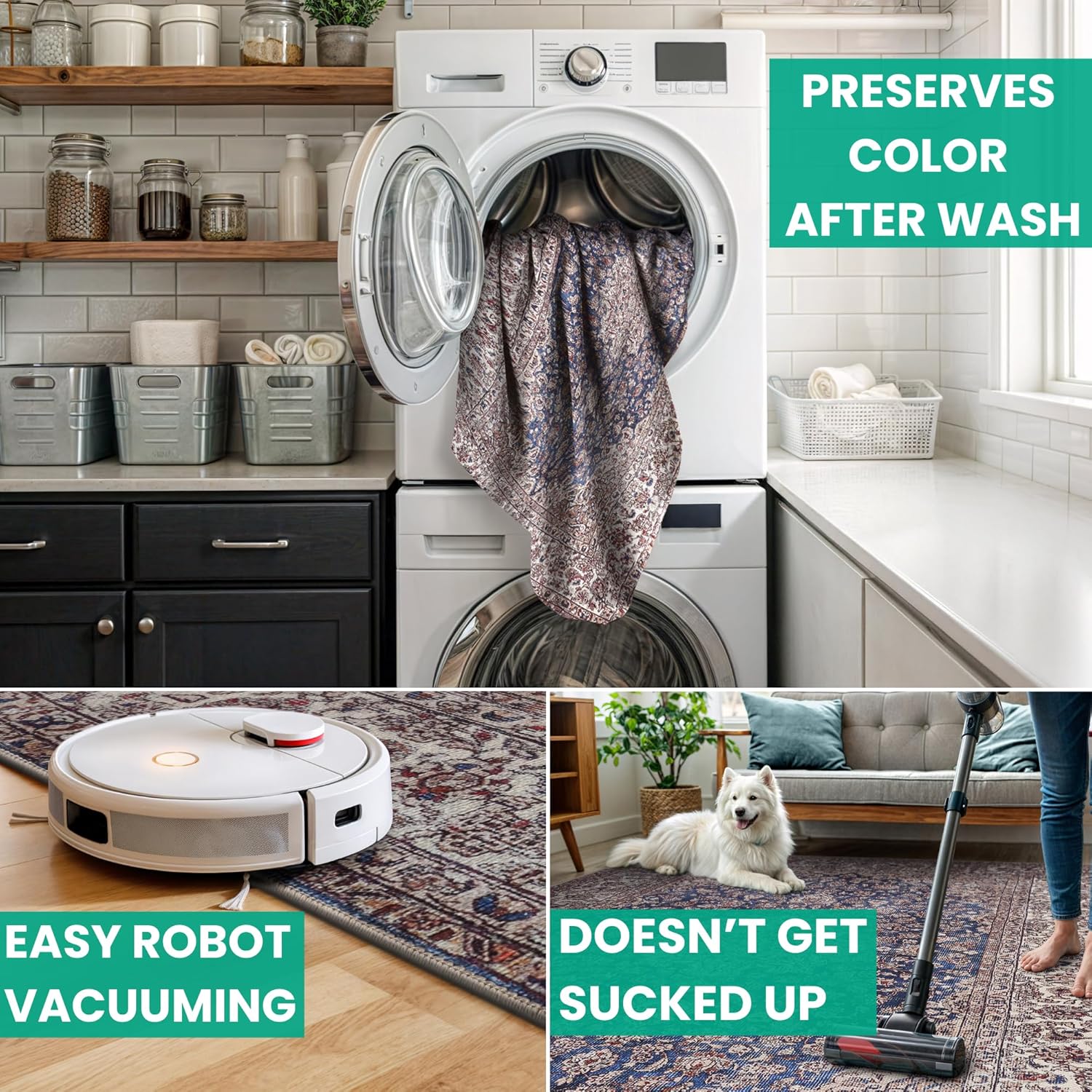 - MACHINE WASHABLE: Machine wash on delicate cycle (do not use bleach) at 85°F (30°C) and line dry or dry on air-only cycle without heat. Vacuum regularly and spot clean small stains. This easy to clean rug is perfect for families with kids and pets, and for high traffic areas.