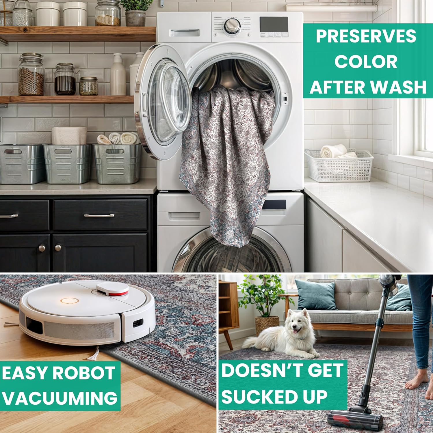 - MACHINE WASHABLE: Machine wash on delicate cycle (do not use bleach) at 85°F (30°C) and line dry or dry on air-only cycle without heat. Vacuum regularly and spot clean small stains. This easy to clean rug is perfect for families with kids and pets, and for high traffic areas.