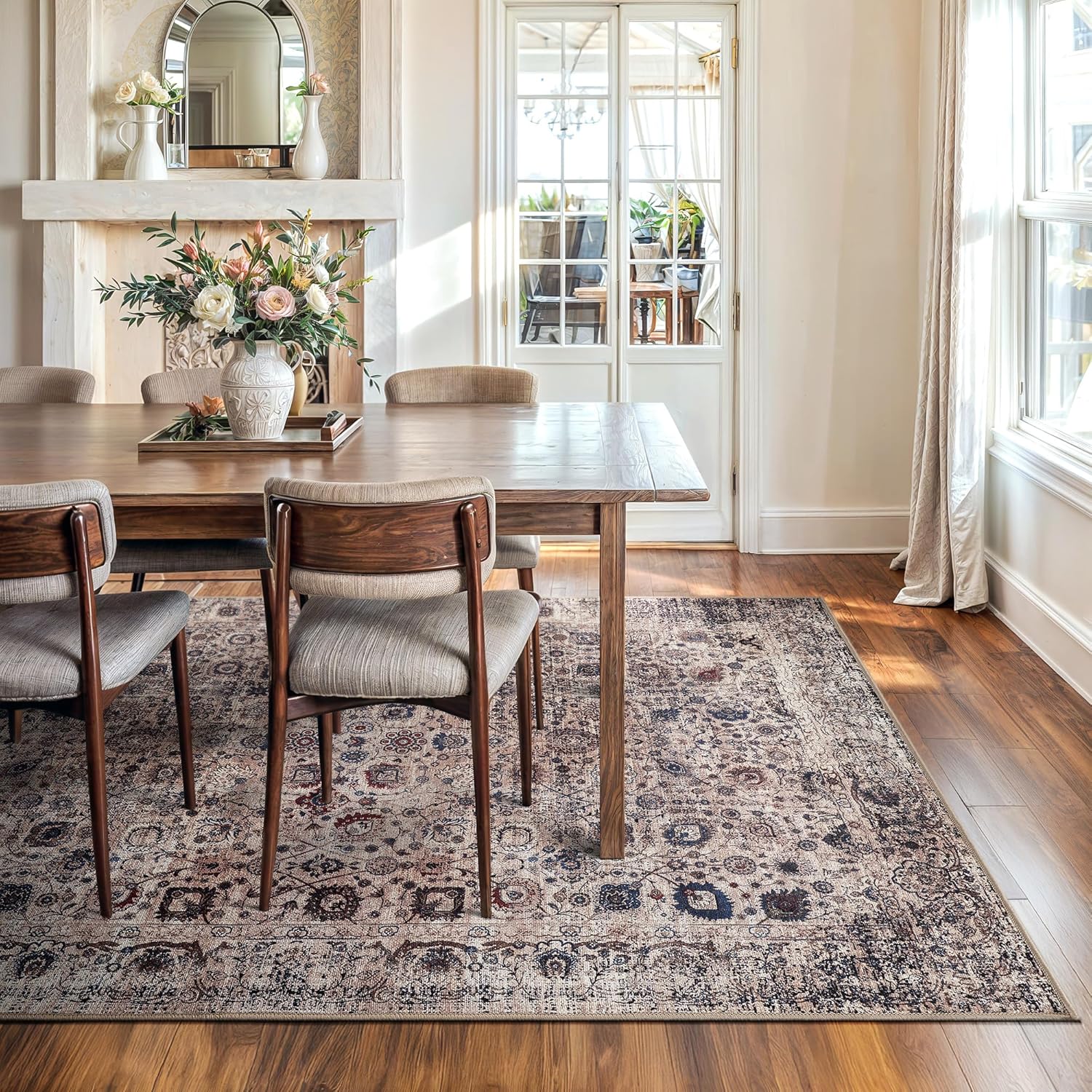 Bloom Rugs Washable Non-Slip 8' x 10' Rug - Light Tan/Blue Traditional Oriental Area Rug for Living Room, Bedroom, Dining Room, and Kitchen - Exact Size: 8' x 10'