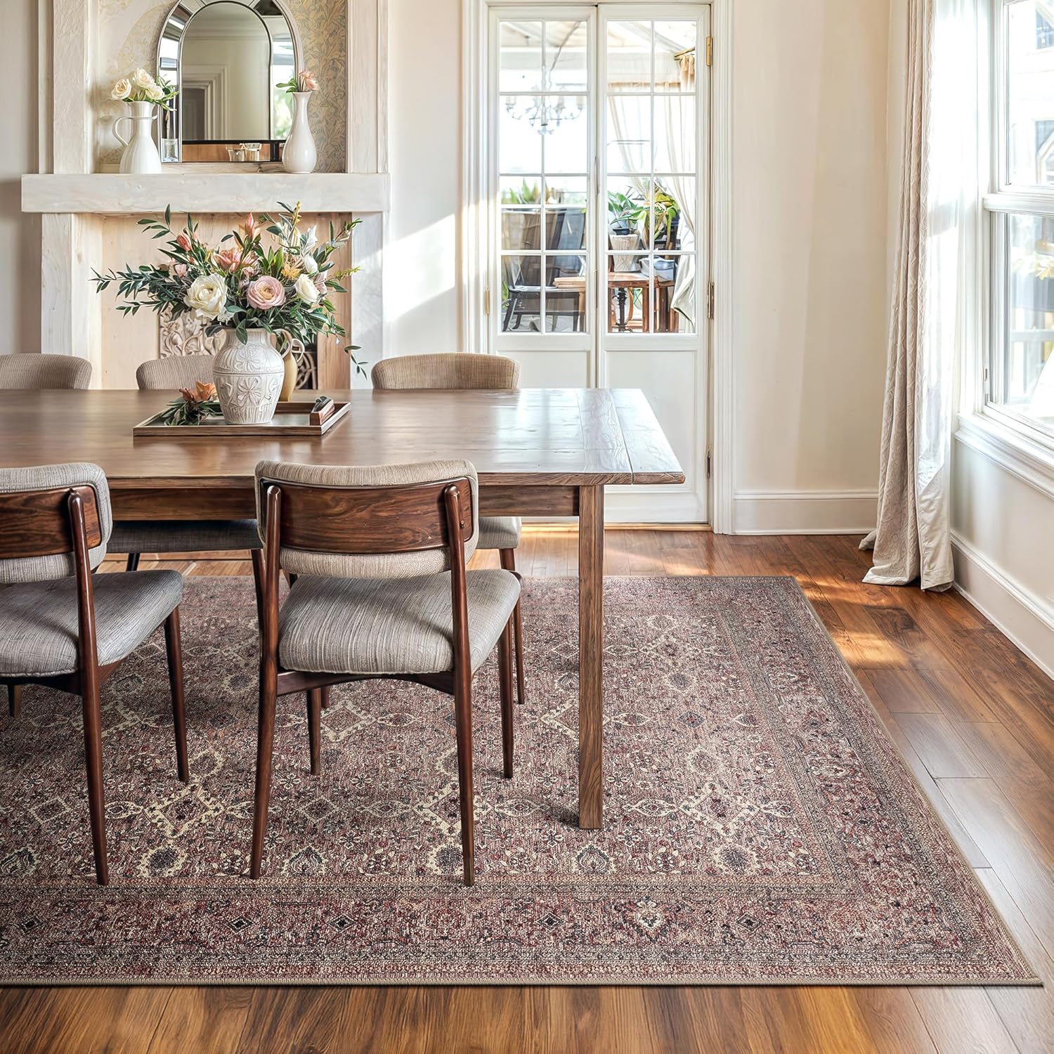 Bloom Rugs Washable Non-Slip 8' x 10' Rug - Beige Traditional Bordered Area Rug for Living Room, Bedroom, Dining Room, and Kitchen - Exact Size: 8' x 10'