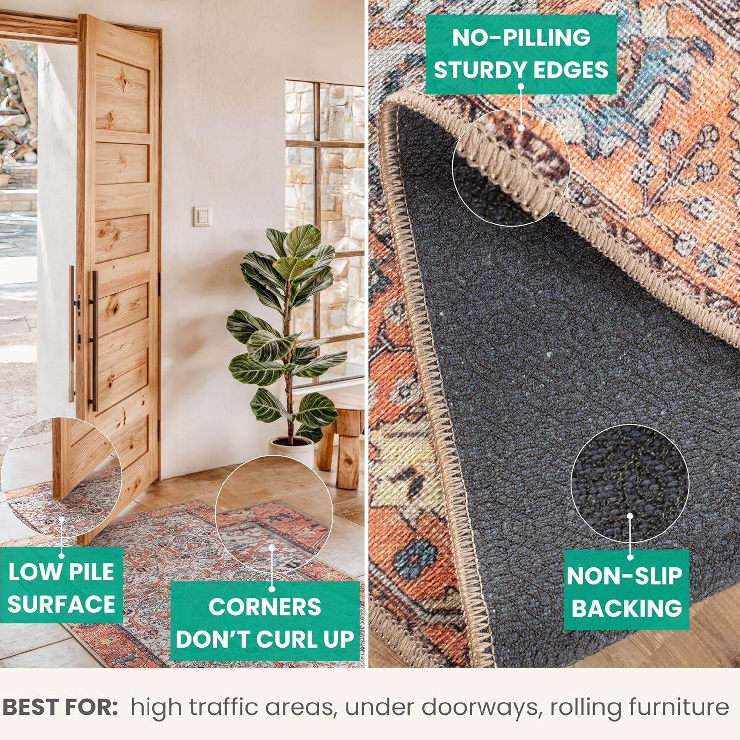 - EASY TO SETUP AND NON-SLIP: This one-piece machine washable rug with non-slip backing attached eliminates any additional setup. Simply unfold and lay flat upon arrival in the desired space. Non-slip backing prevents the rug from moving or sliding without the need for additional rug pad or grippers.