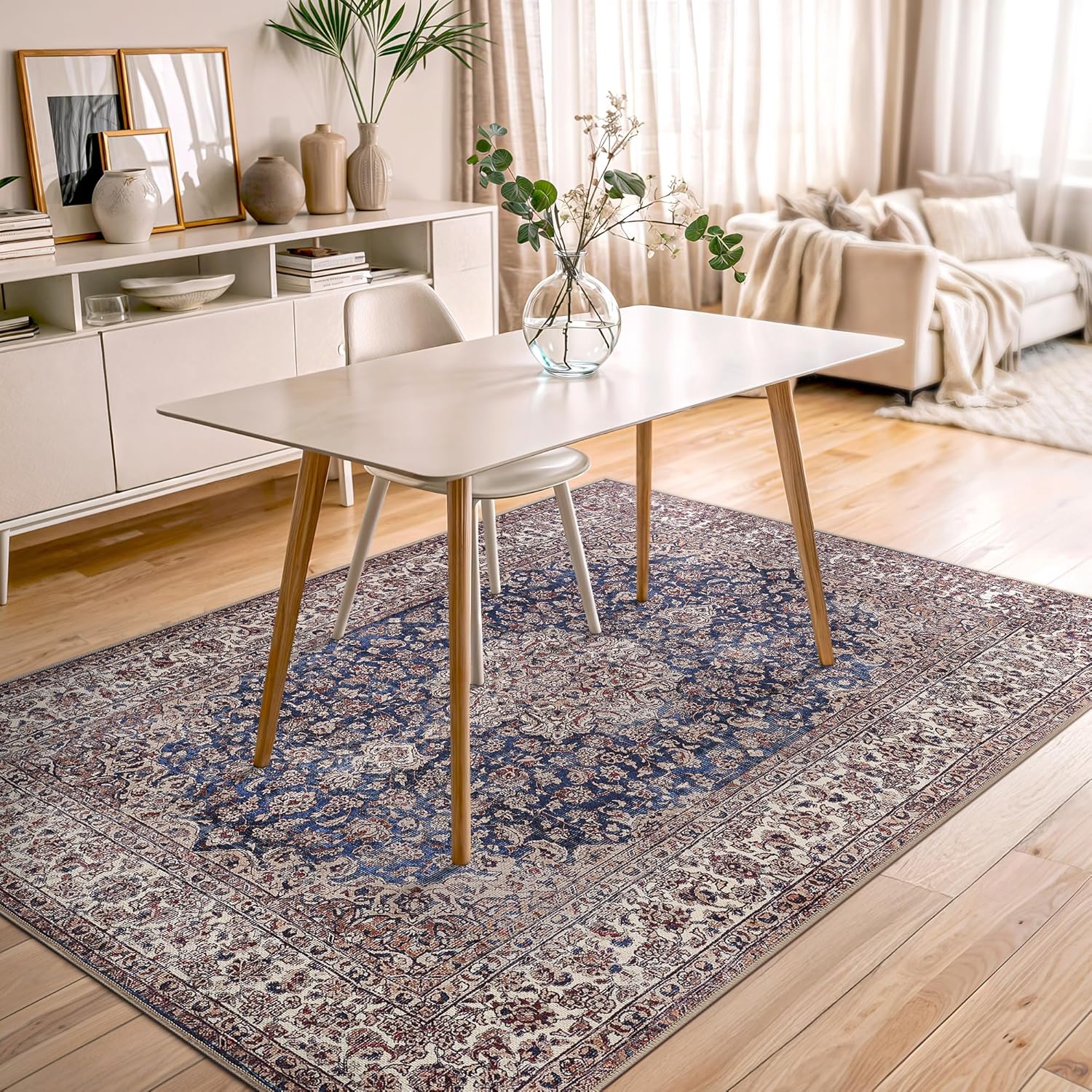Bloom Rugs Washable Non-Slip 5' x 7' Rug - Dark Blue/Beige Traditional Medallion Area Rug for Living Room, Bedroom, Dining Room, and Kitchen - Exact Size: 5' x 7'