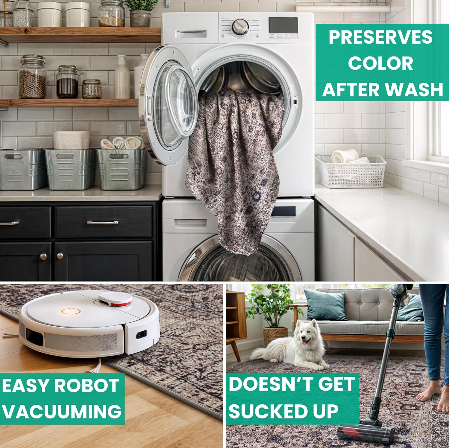 - MACHINE WASHABLE: Machine wash on delicate cycle (do not use bleach) at 85°F (30°C) and line dry or dry on air-only cycle without heat. Vacuum regularly and spot clean small stains. This easy to clean rug is perfect for families with kids and pets, and for high traffic areas.