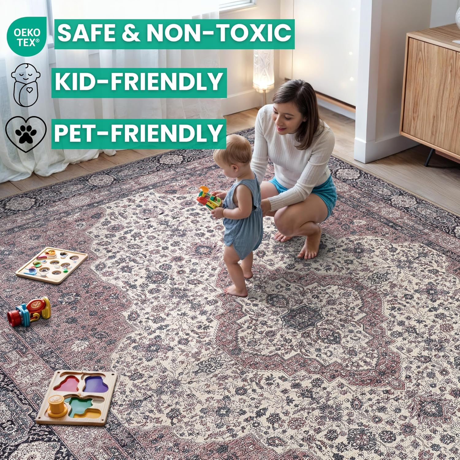 - EASY TO SETUP AND NON-SLIP: This one-piece machine washable rug with non-slip backing attached eliminates any additional setup. Simply unfold and lay flat upon arrival in the desired space. Non-slip backing prevents the rug from moving or sliding without the need for additional rug pad or grippers.