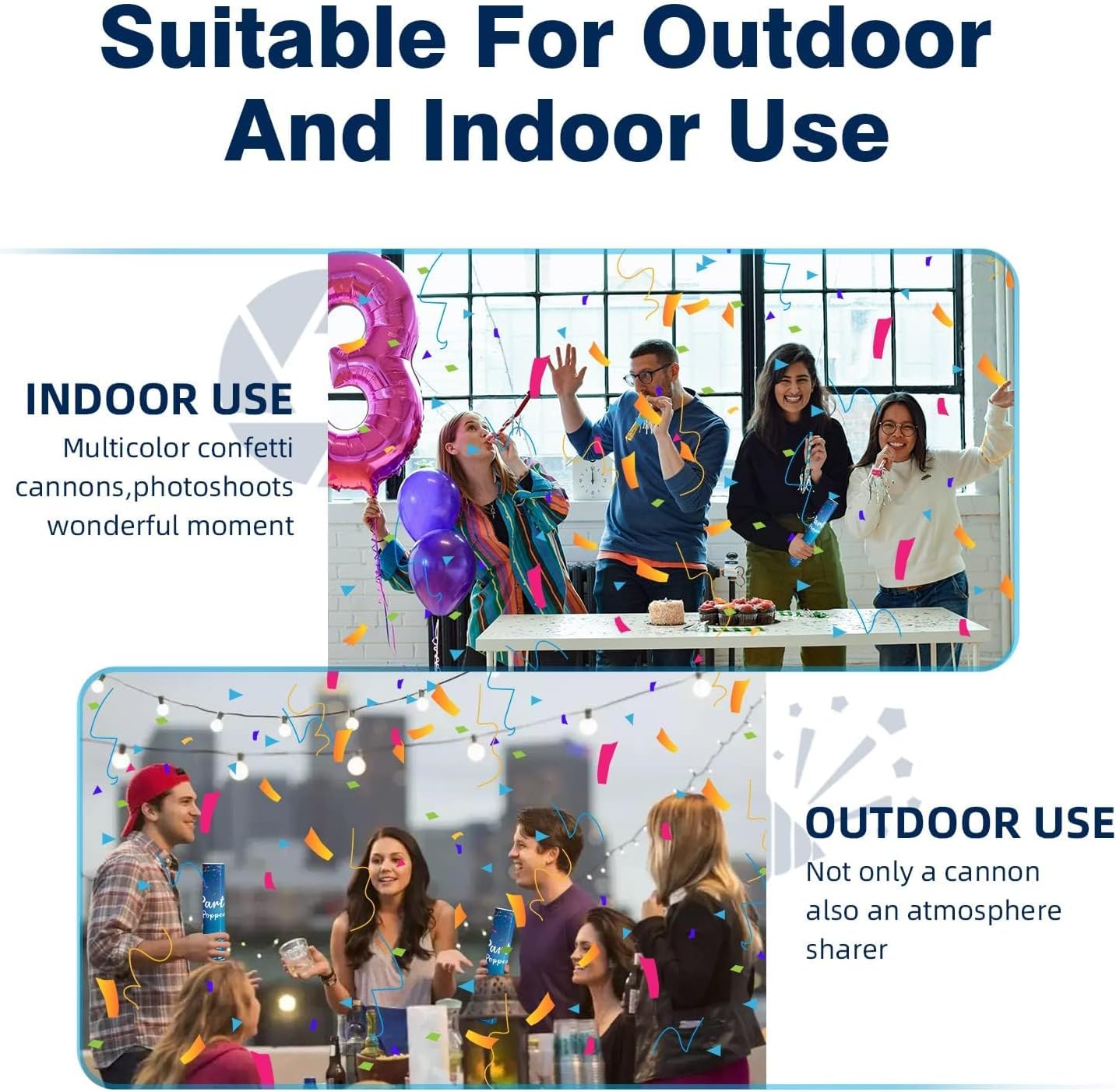 - CONFETTI POPPERS,PERFECT FOR ANY EVENT - Confetti cannon biodegradable suitable for Graduation,Wedding Celebration,Birthday, Christmas Eve and New Year Celebration or other celebrations.At every wonderful moment,our confetti cannon are a good atmosphere,the biodegradable multicolor confetti poppers sprayed in the air will create a visual feast