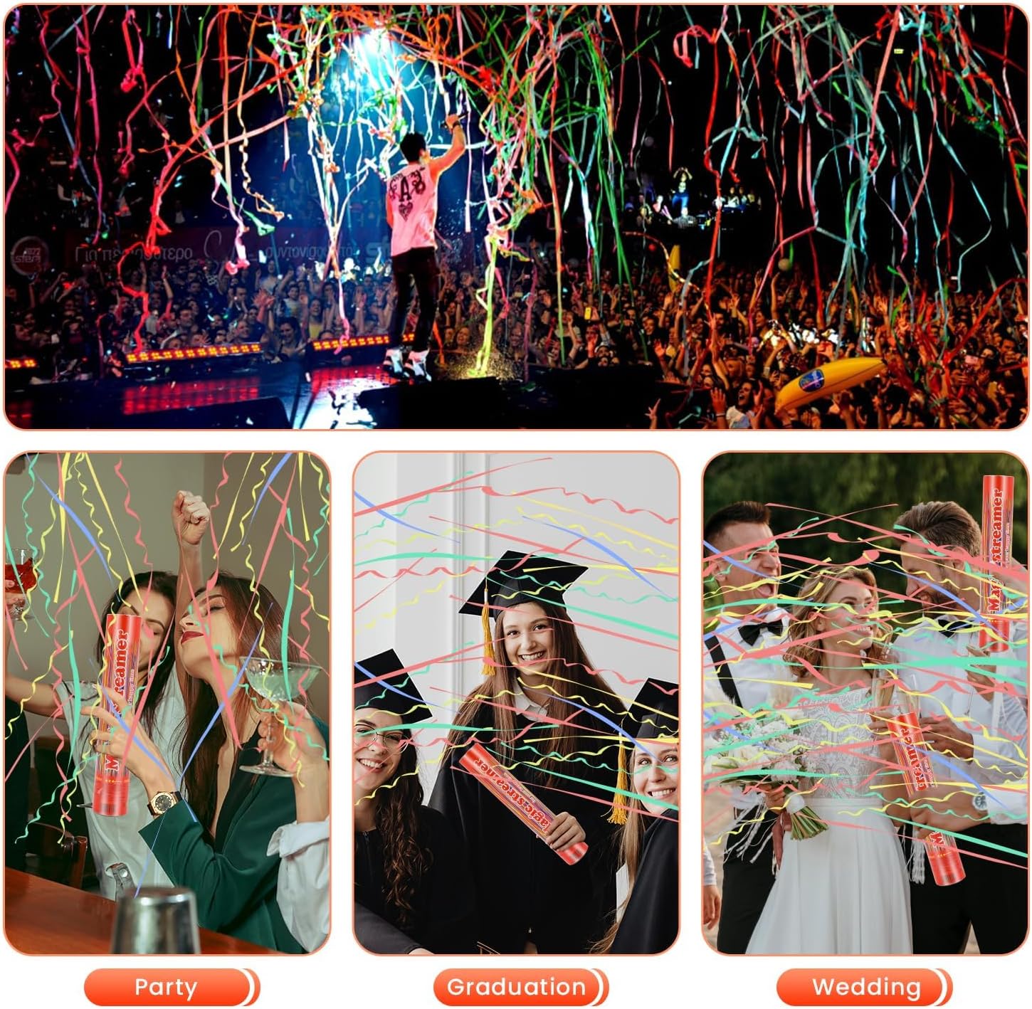 - 【Multiple Occasions Party Poppers】party streamer poppers confetti shooters work well indoors and outdoors.Poppers streamer shooters are great for adding fun, festive energy to any party or gathering. Confetti cannon is perfect for any occasions, graduation, wedding, birthdays party, Opening, holidays, Eve days and christmas or play a prank.