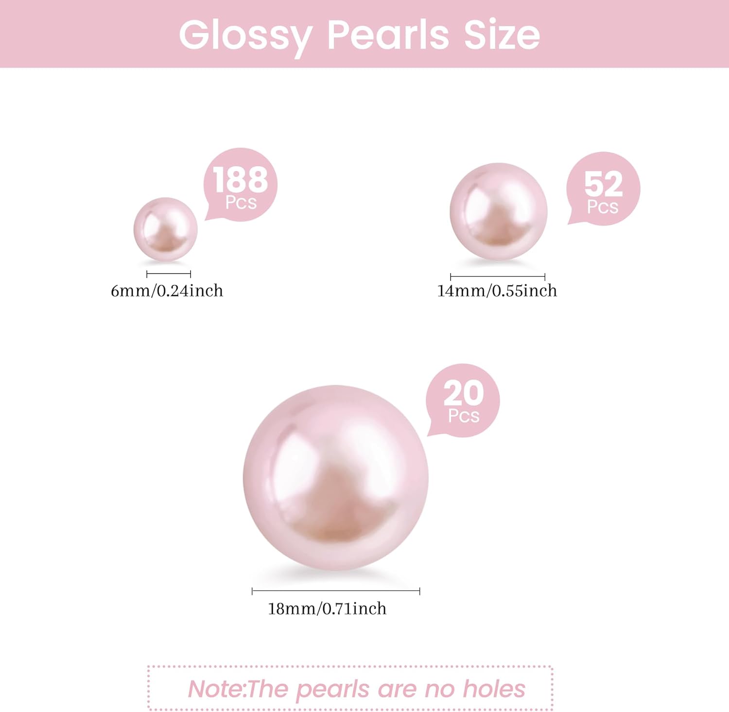 - Multi-Size Pearl Beads - Includes 260pcs metallic Pink pearl beads in three versatile sizes (6mm, 14mm, 18mm) for dynamic layering and a luxurious effect in vases or bowls