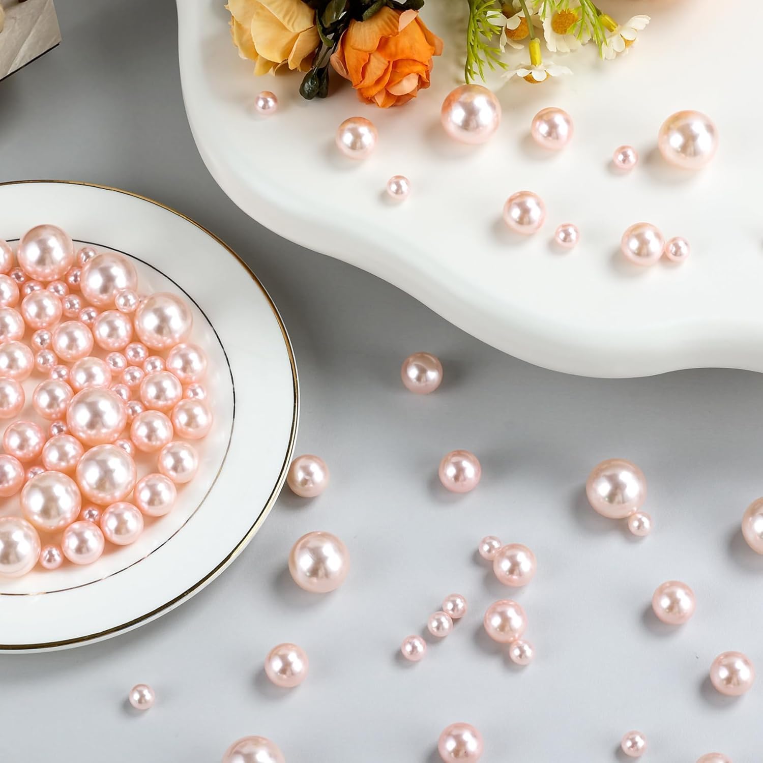 - High Quality Glossy Mirror Beads - Glossy polished pearls for vases with smoother appearance are no holes; Wonderful faux pearls are made of safe and high quality plastic; Durable enough to reuse over and over again in many ways