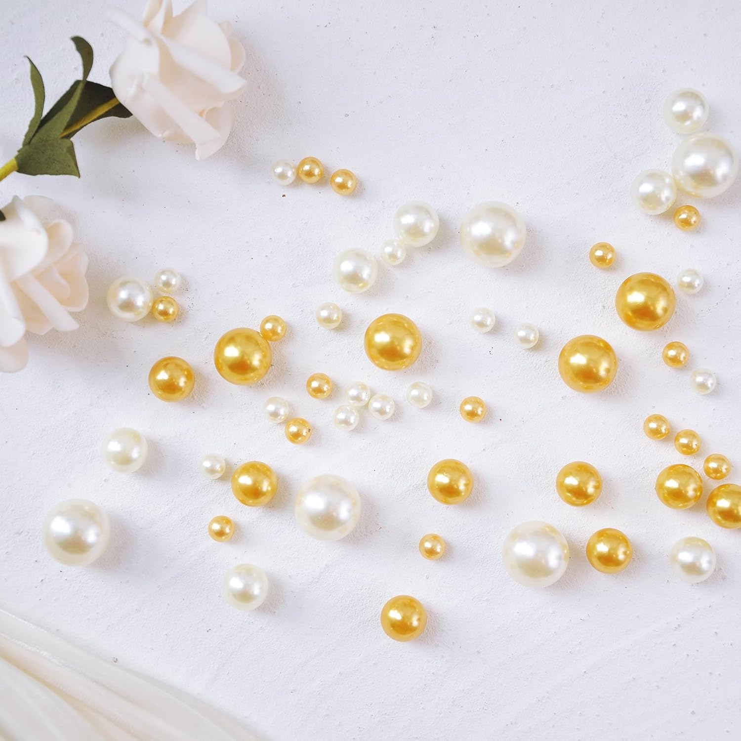 - Multi-Size Pearl Beads - Includes 260pcs metallic Gold&Cream pearl beads in three versatile sizes (6mm, 14mm, 18mm) for dynamic layering and a luxurious effect in vases or bowls