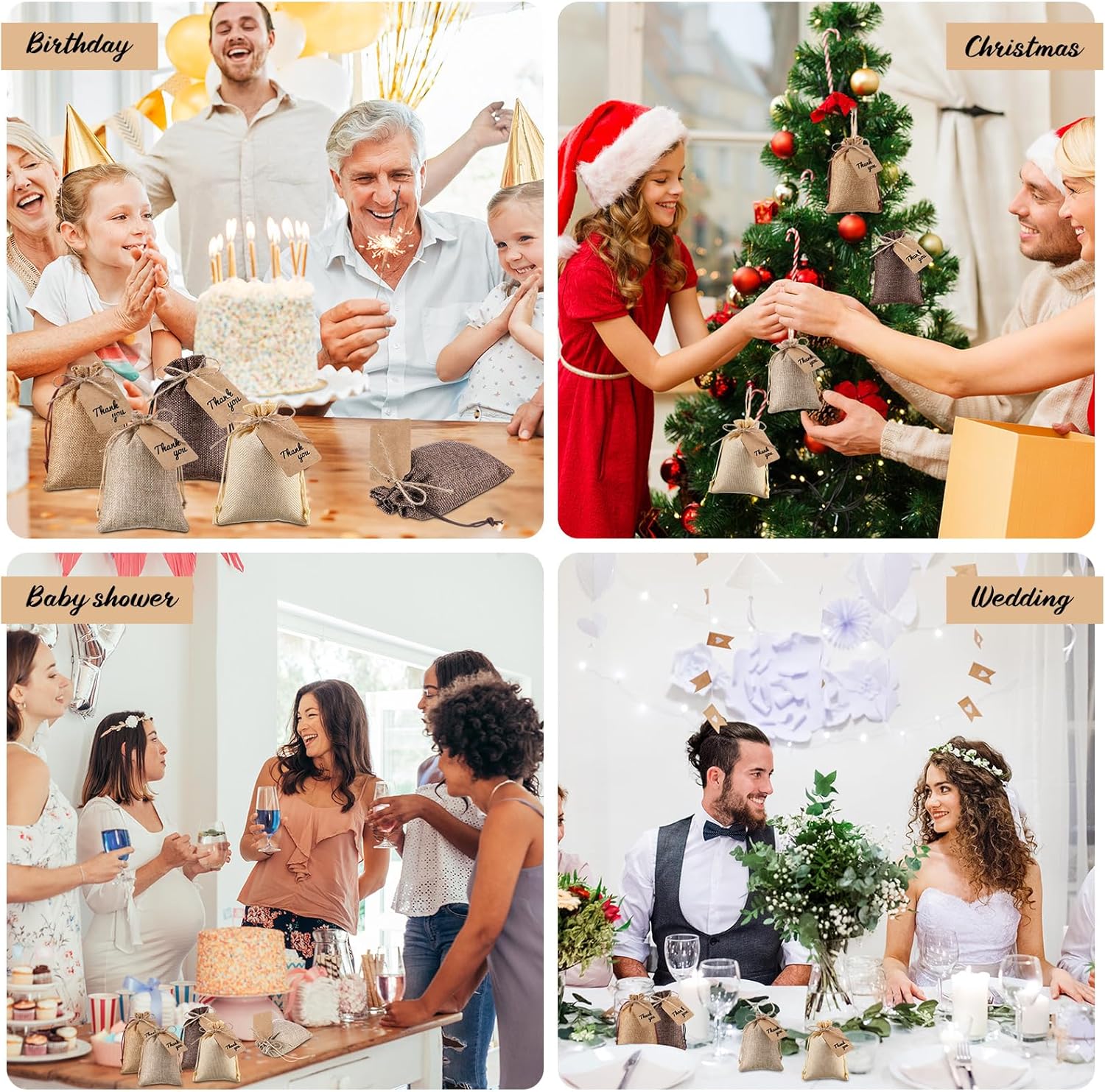 - Wide Occasions: these burlap treat bags are ideal for home parties, weddings, anniversaries, birthdays, bridal showers, housewarming, travel, holiday celebrations, family reunions, Valentine's Day, Christmas, Thanksgiving, New Year and other festivals, giving small gifts to friends and family members during the holidays