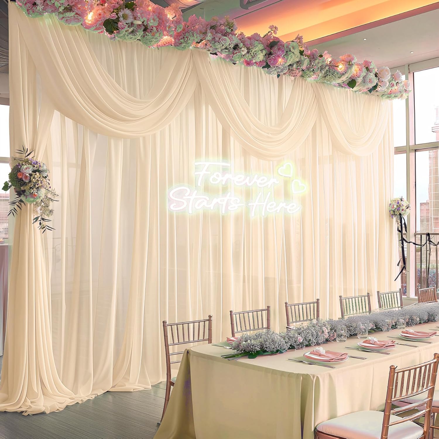 - Multipurpose and Versatile - These champagne sheer backdrop curtains are applicable for any indoor and outdoor occasion either for decorative or functional uses: weddings arch, receptions, parties, bridal and baby showers, birthdays, candy buffets, dessert tables background, trade shows, wedding stages photography, photo booths, ceremony and more