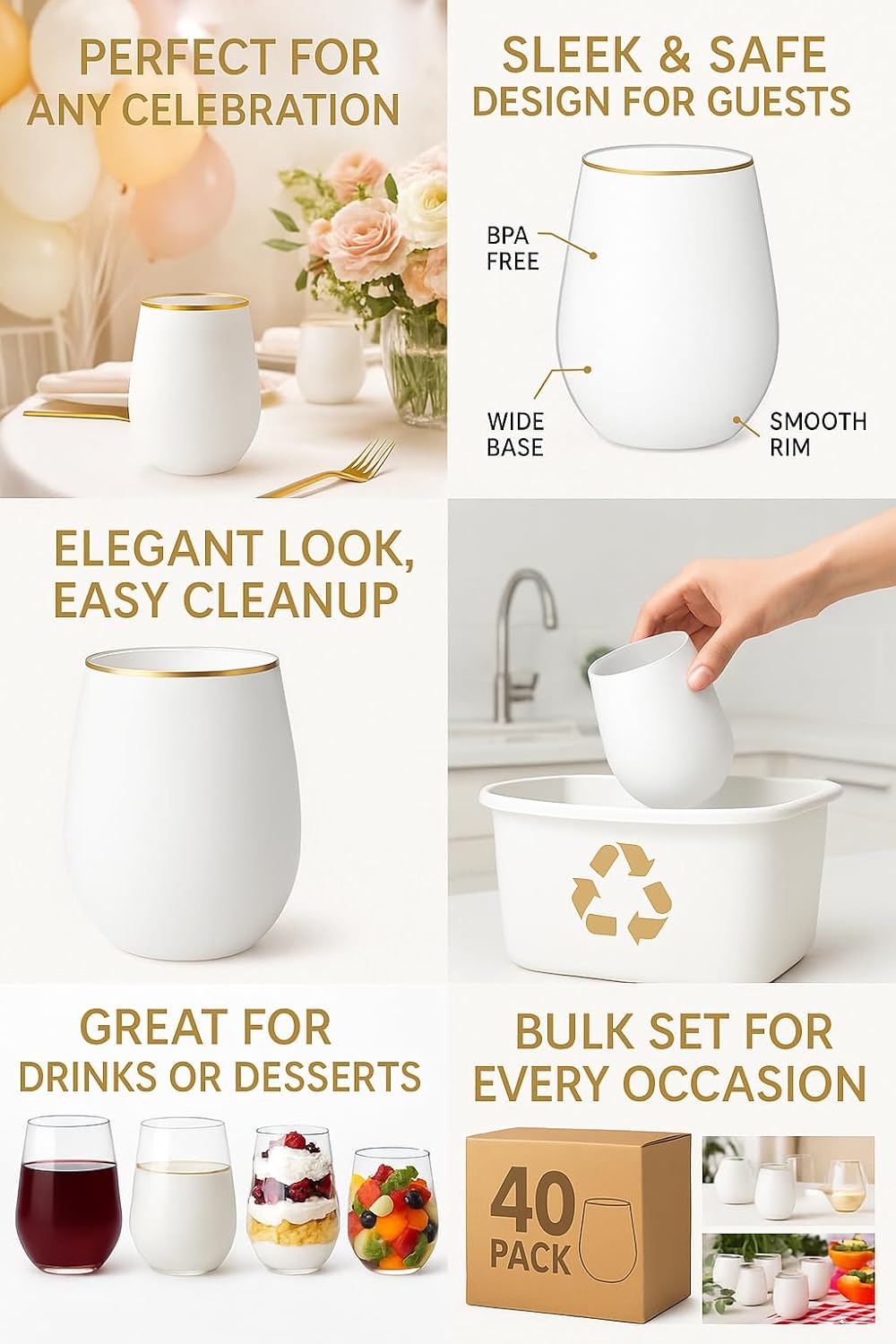- Bulk Set for Every Occasion: With 40 wine cups per pack, youβll have plenty on hand for your next event, whether it's a formal party, backyard BBQ, or corporate happy hour.