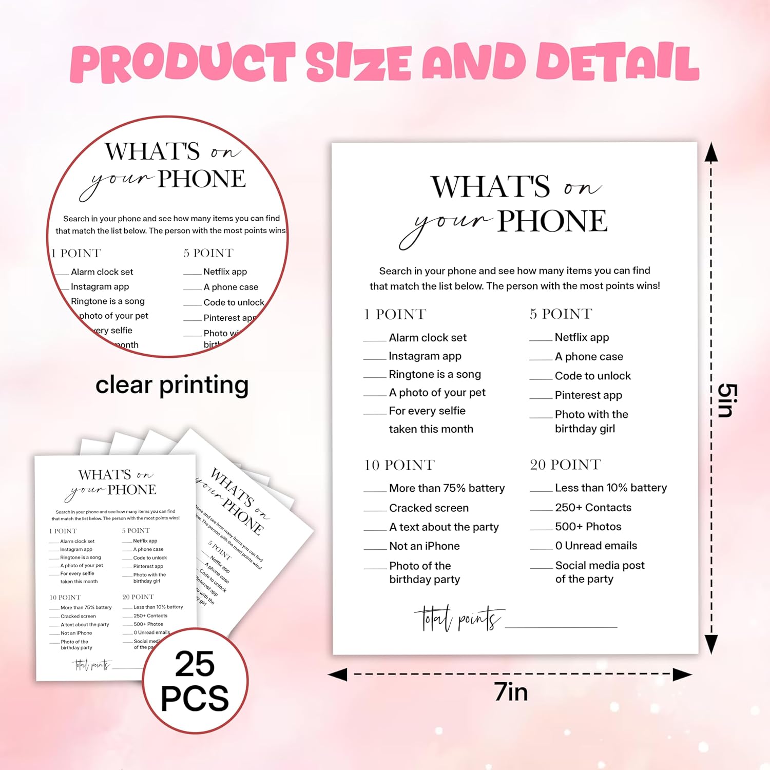 Birthday Party Games, What's on Your Phone, 25 Pcs Card Set for Guests, Fun Birthday Game for Teen Adults – A07