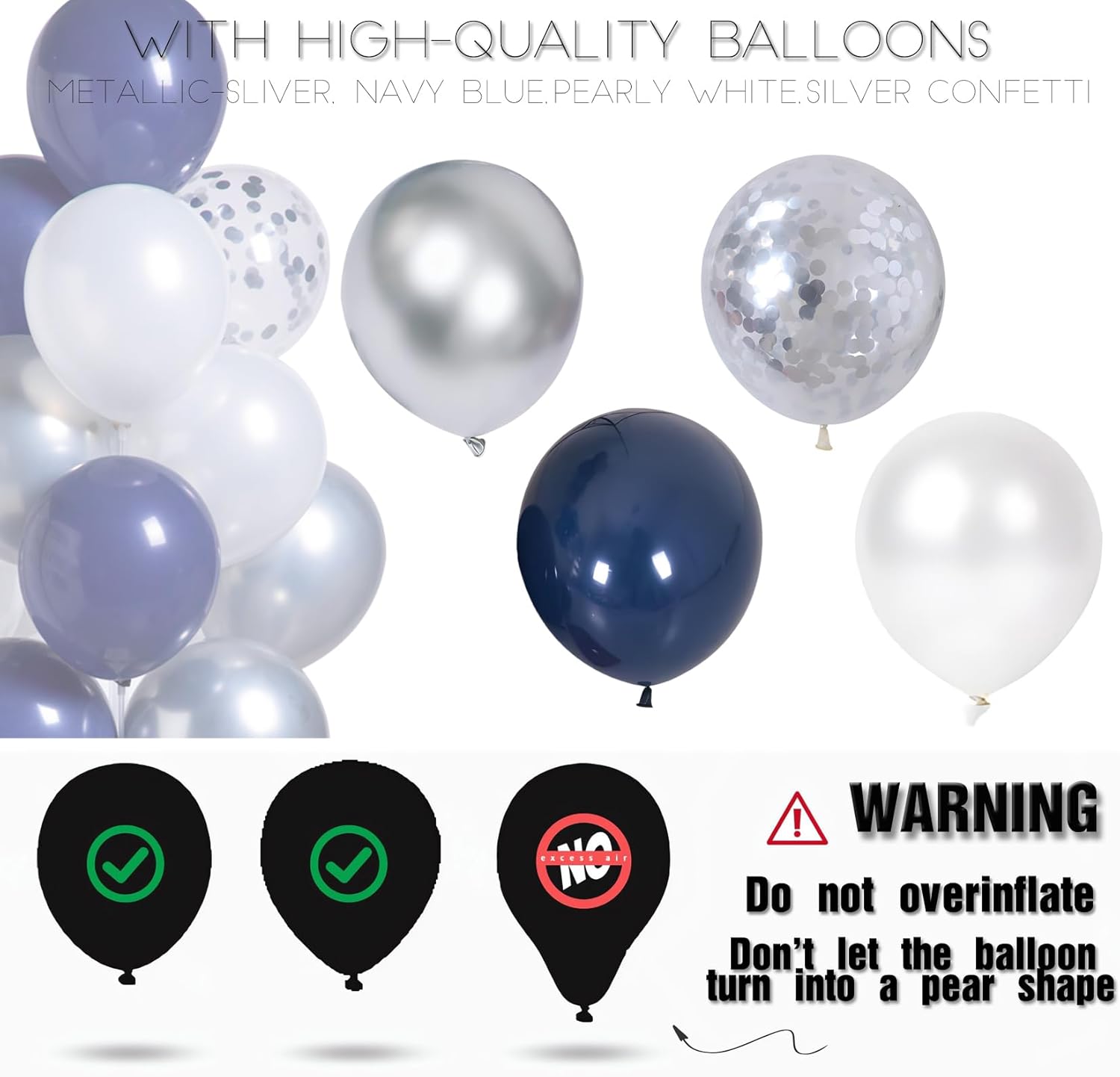 Navy Blue Silver Confetti Balloon Column Kit Set of 2 Included-Balloon Column Stand with Base&Pole,Backdrop Decoration for Metallic Chrome Wedding, Baby Shower, Birthday,Gaduation Party Decoration