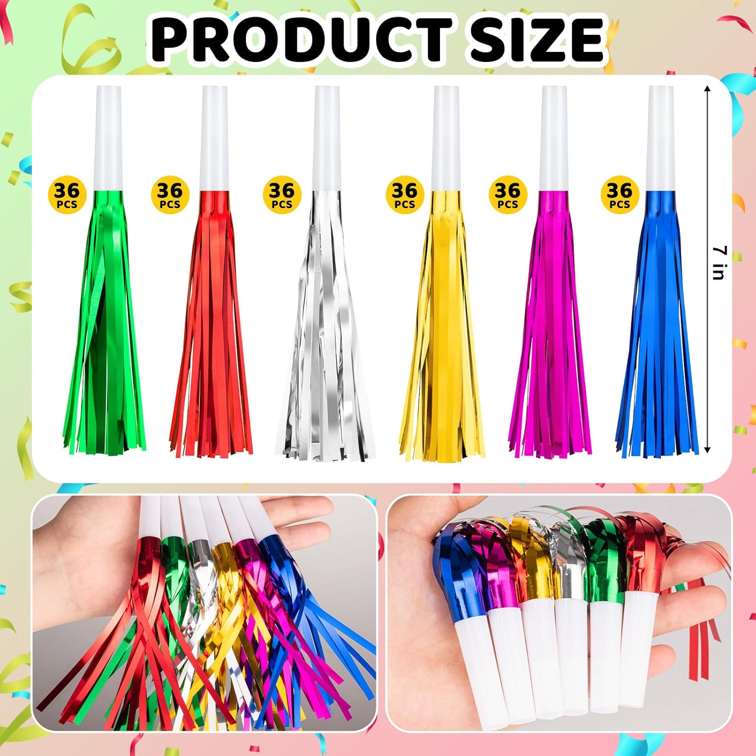- SAFE TO USE :Our glitter metallic fringed noise makers are easy to use, ensuring a good experience. These party accessories are good for releasing excitement and happiness, creating a lively atmosphere