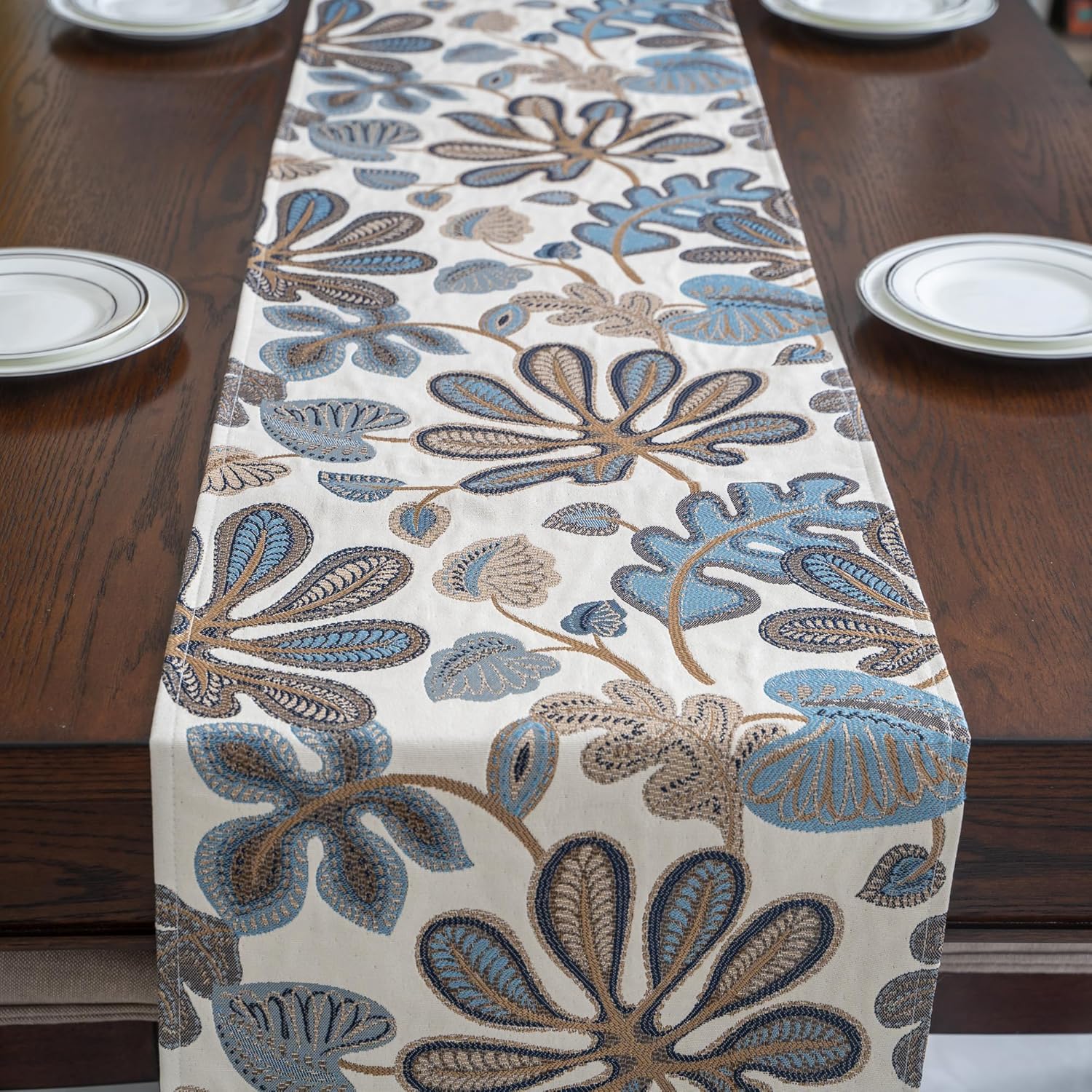 Mika Home Tropical Leaf Table Runner for Home Decor 13X90 Inches Blue Brown Seasonal Dining Table Decoration for Home