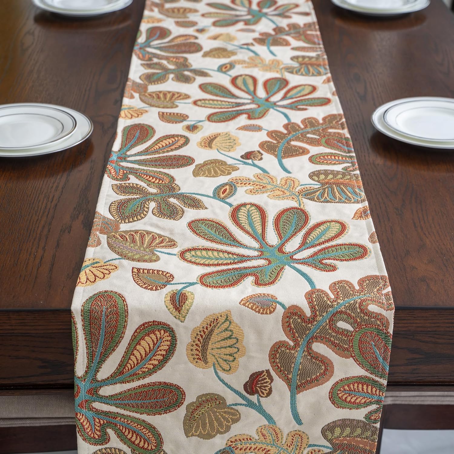 Mika Home Tropical Leaf Table Runner for Home Decor 13X90 Inches Teal Brown Seasonal Dining Table Decoration for Home