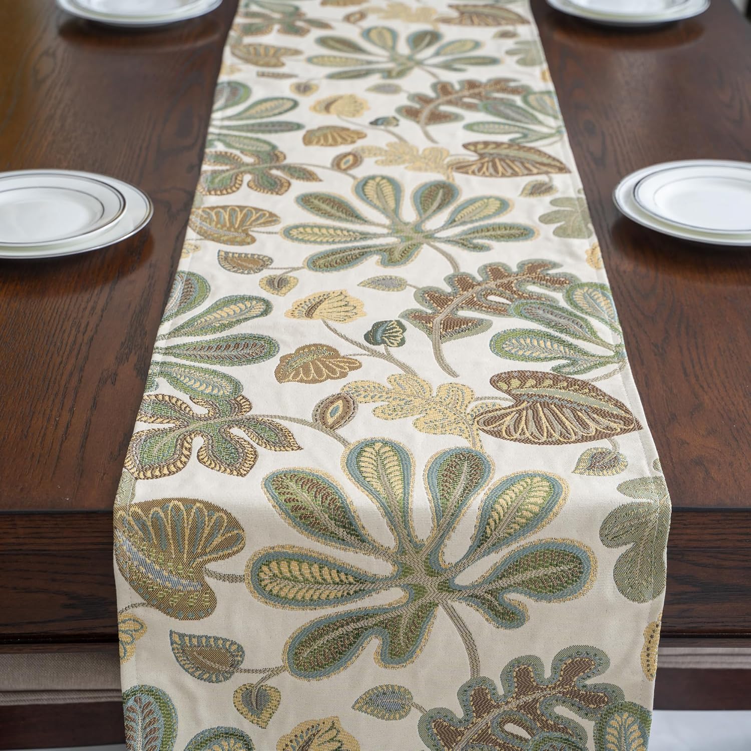 - Material:Our Tropical Leaf table runner is made of high quality jacquard fabrics,100% polyester,soft and durable, protecting your table's surface from scratches and spills.