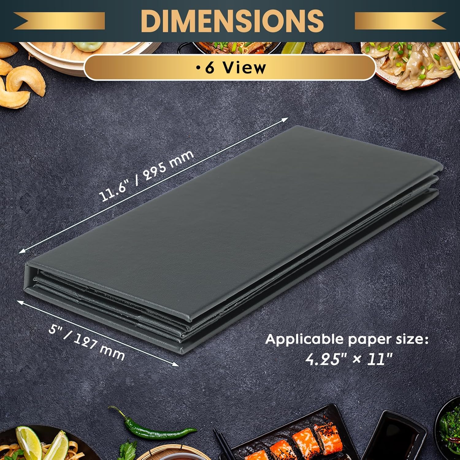 12 Pack 6 View Menu Holder Menu Covers 4.25" x 11" | Black Leather Menu Sleeves Book Style for Restaurant Coffee Bars Wine List