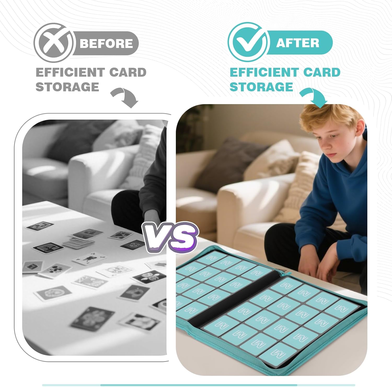 - 【ENSURING LONG-TERM STORAGE】 The card sleeves are made from acid-free, tear-resistant, and scratch-proof materials, ensuring durability for frequent use while keeping your cards securely organized and in excellent condition. The side loading pockets facilitate effortless insertion of cards and effectively prevent them from slipping out. Each page is reinforced with padding and designed to resist warping, making them perfect for displaying cards.Additionally, the card pages have an ultra-clear design, making display and viewing easy.