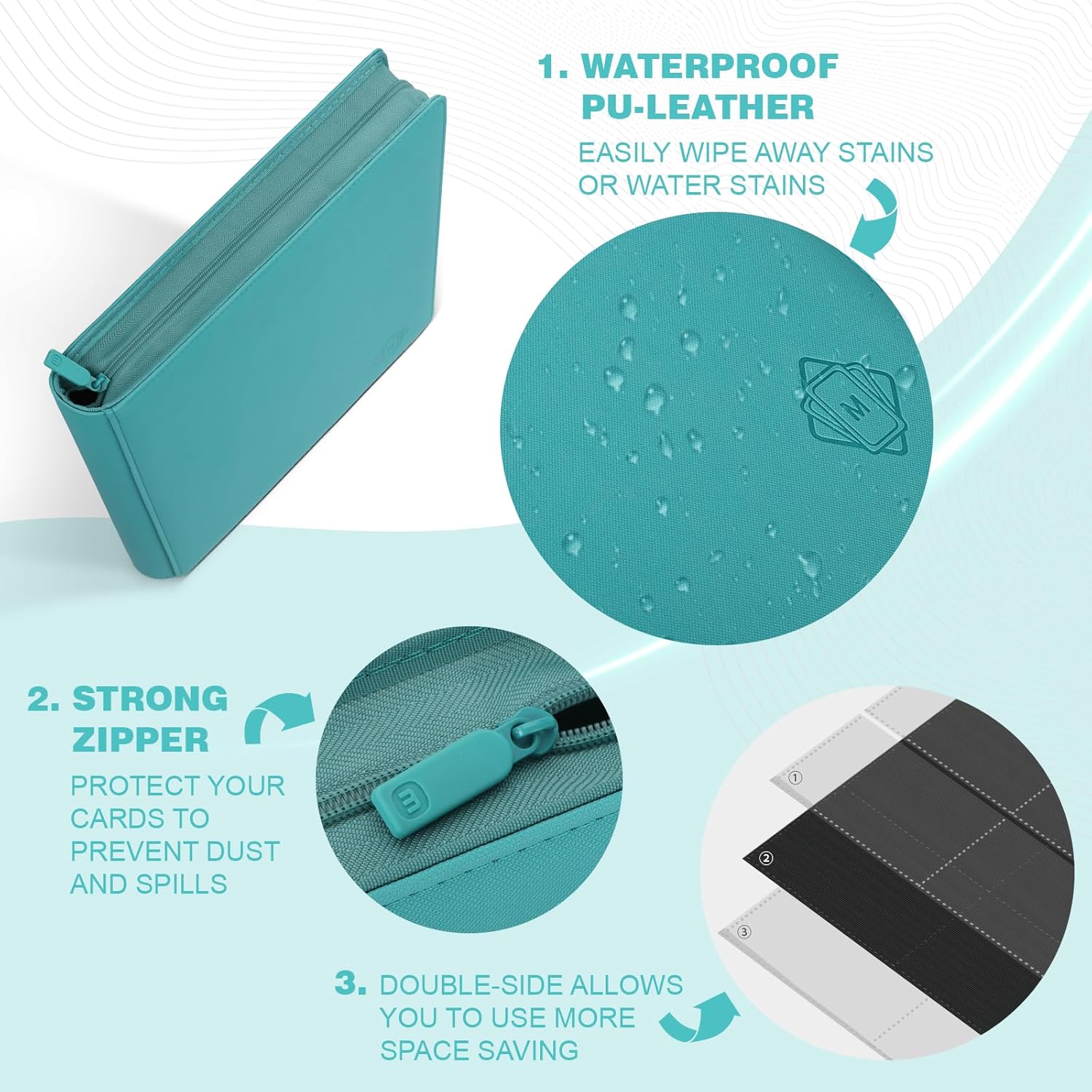 - 【PREMIUM QUALITY MATERIAL】 Our card binder is made of textured PU leather finish which is durable and comfortable. It more resistant to water and dust, Designed to keep card securely in place. Quality zipper keep cards protected and intact when not in use.The perfect way to safely browse your cards and never have to worry about your valuable cards being damaged. Offer different stylish colors to match your tastes.